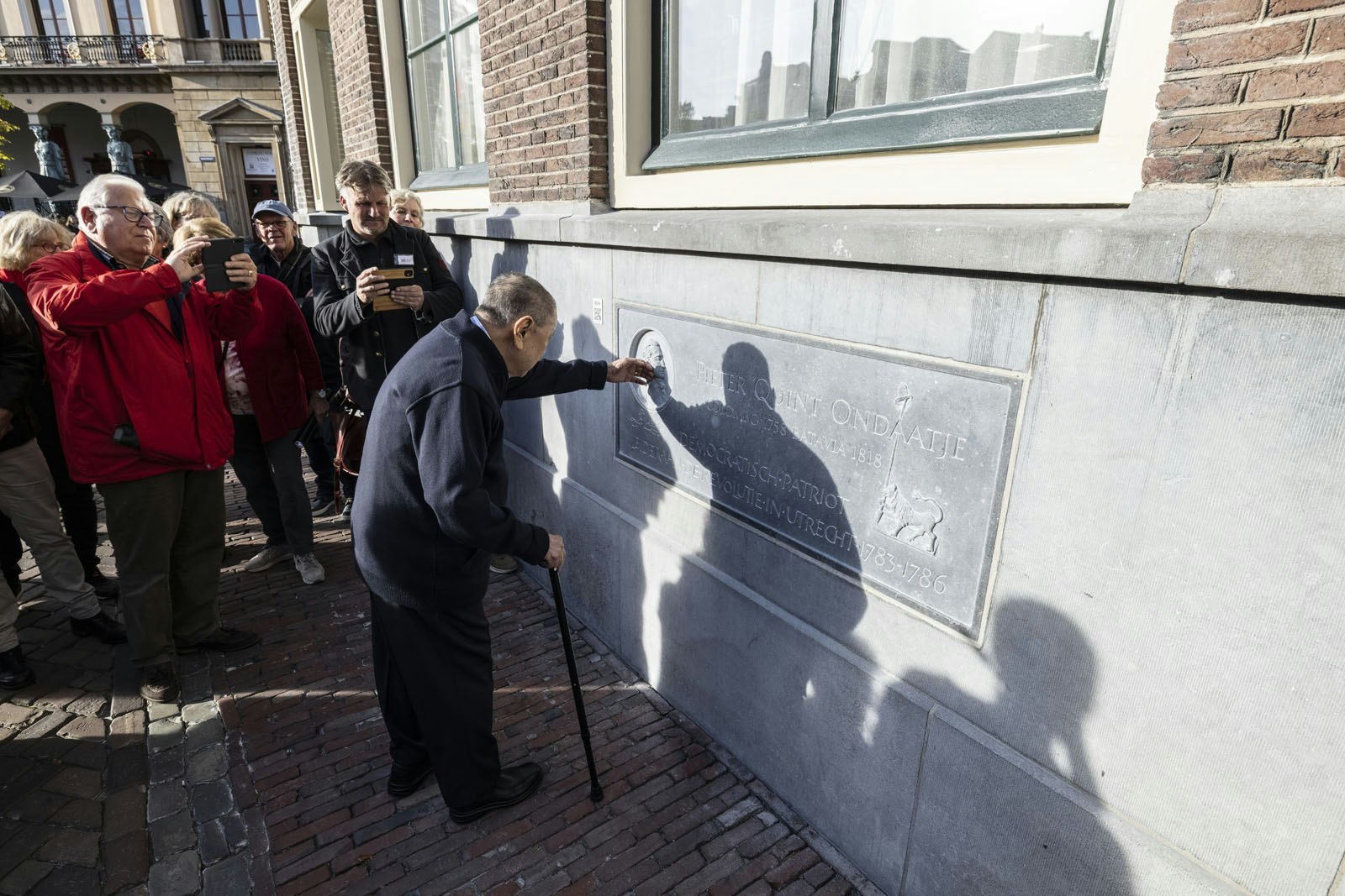 Utrechtse patriot Pieter Quint Ondaatje krijgt gevelsteen aan de buitenkant van het stadhuis