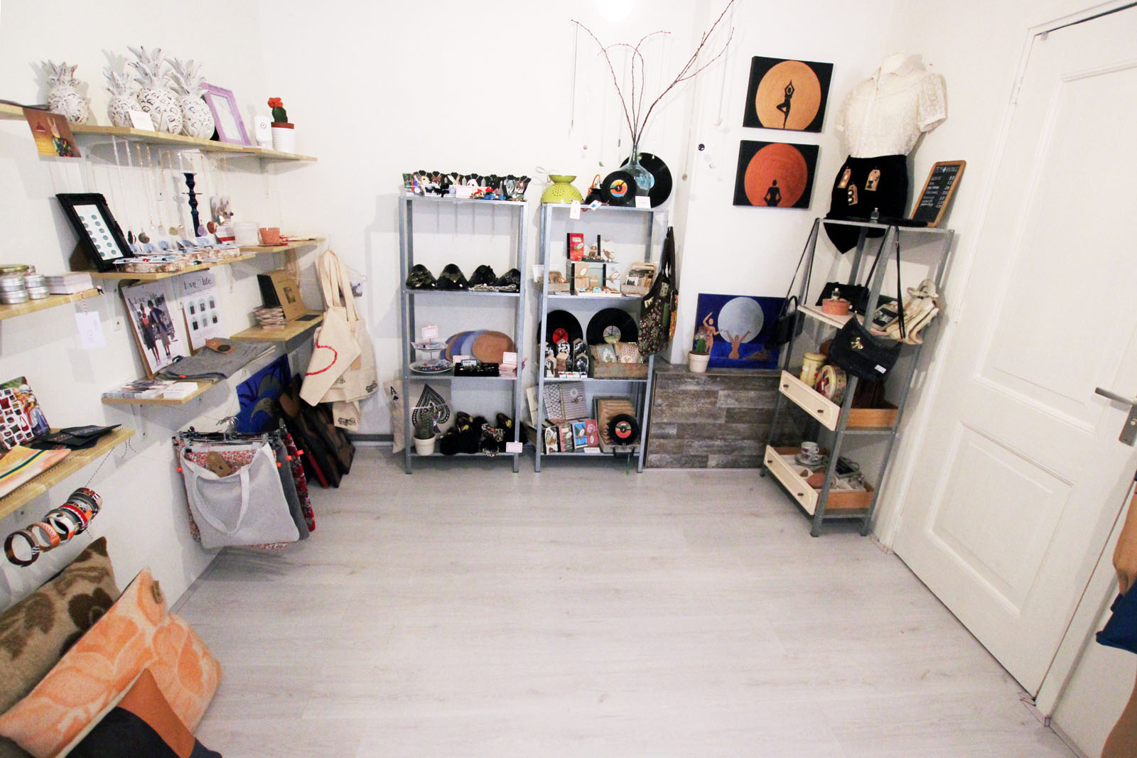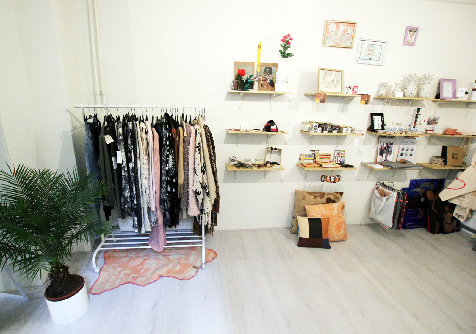 Drie maanden geleden opende Phyllis Bouwstra (24) en Naomi van Dijk (23) de winkel Jut en Jul in de Telingstraat 11 in Utrecht. Aan de voorkant van de winkel vind je kleding, sieraden en interieur accessoires die de dames zelf hebben ingekocht. Maar achterin de winkel gebeurt iets bijzonders. Daar kunnen creatieve ondernemers en ontwerpers een plankje of stellingkast voor minimaal een maand huren.