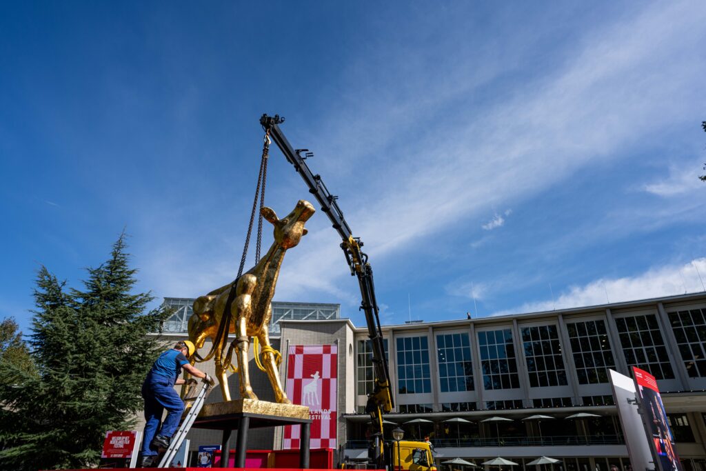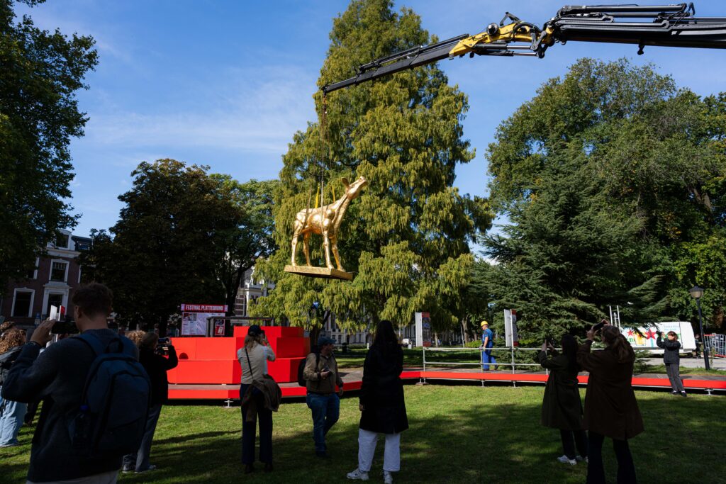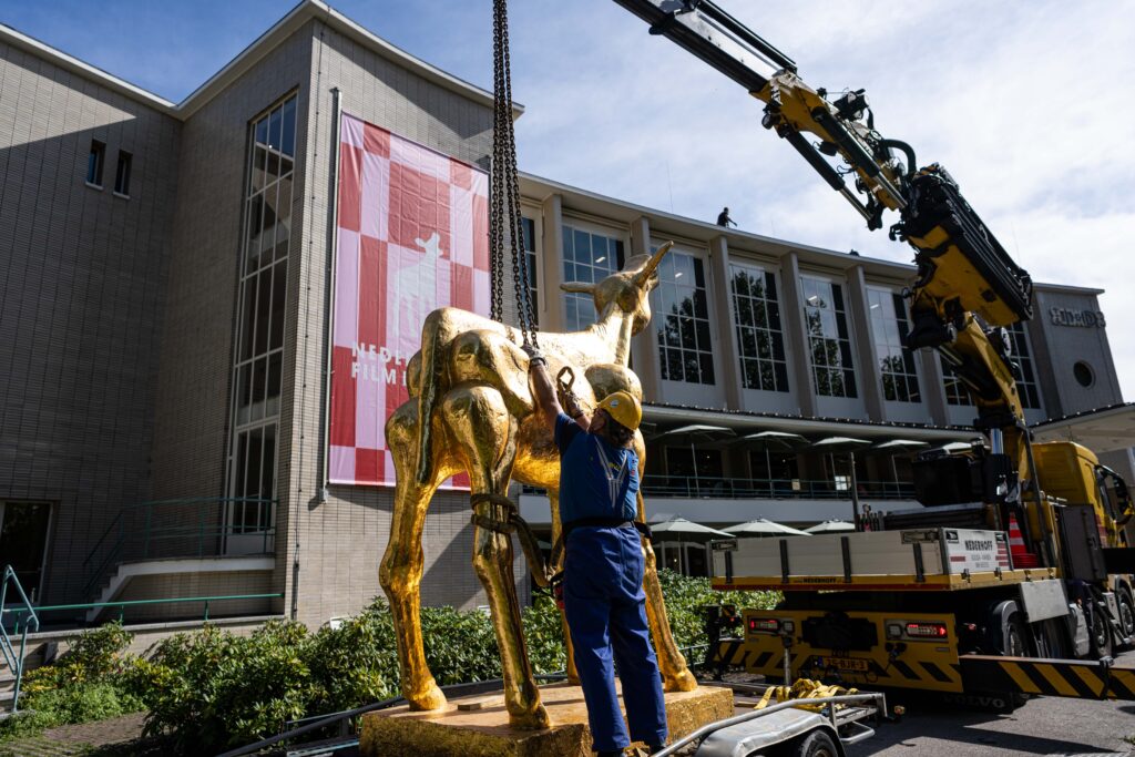 Het Gouden Kalf staat weer op zijn sokkel naast de Stadsschouwburg. Het symbool van het Nederlands Film Festival (NFF) is voor de 45e keer op zijn plek gehesen. Vanaf vrijdag 26 september zijn er in de stad weer premières en activiteiten rondom de Nederlandse film. Op vrijdag 3 oktober wordt het afgesloten met het Gouden Kalveren Gala – waarna het kalf weer op stal mag.