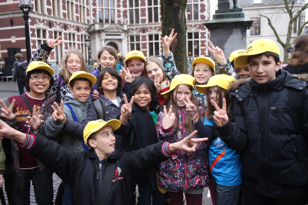 Dansen op driehonderd jaar muziek. Dat deden ruim 800 leerlingen van groep 7 en 8 vandaag op het Domplein ter ere van het driehonderdjarig bestaan van de Vrede van Utrecht.