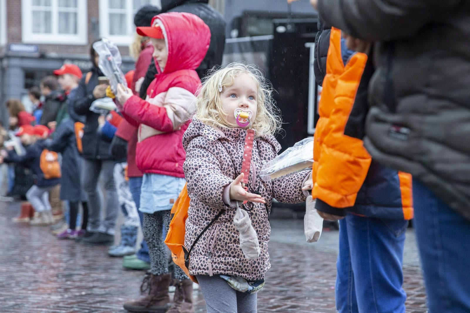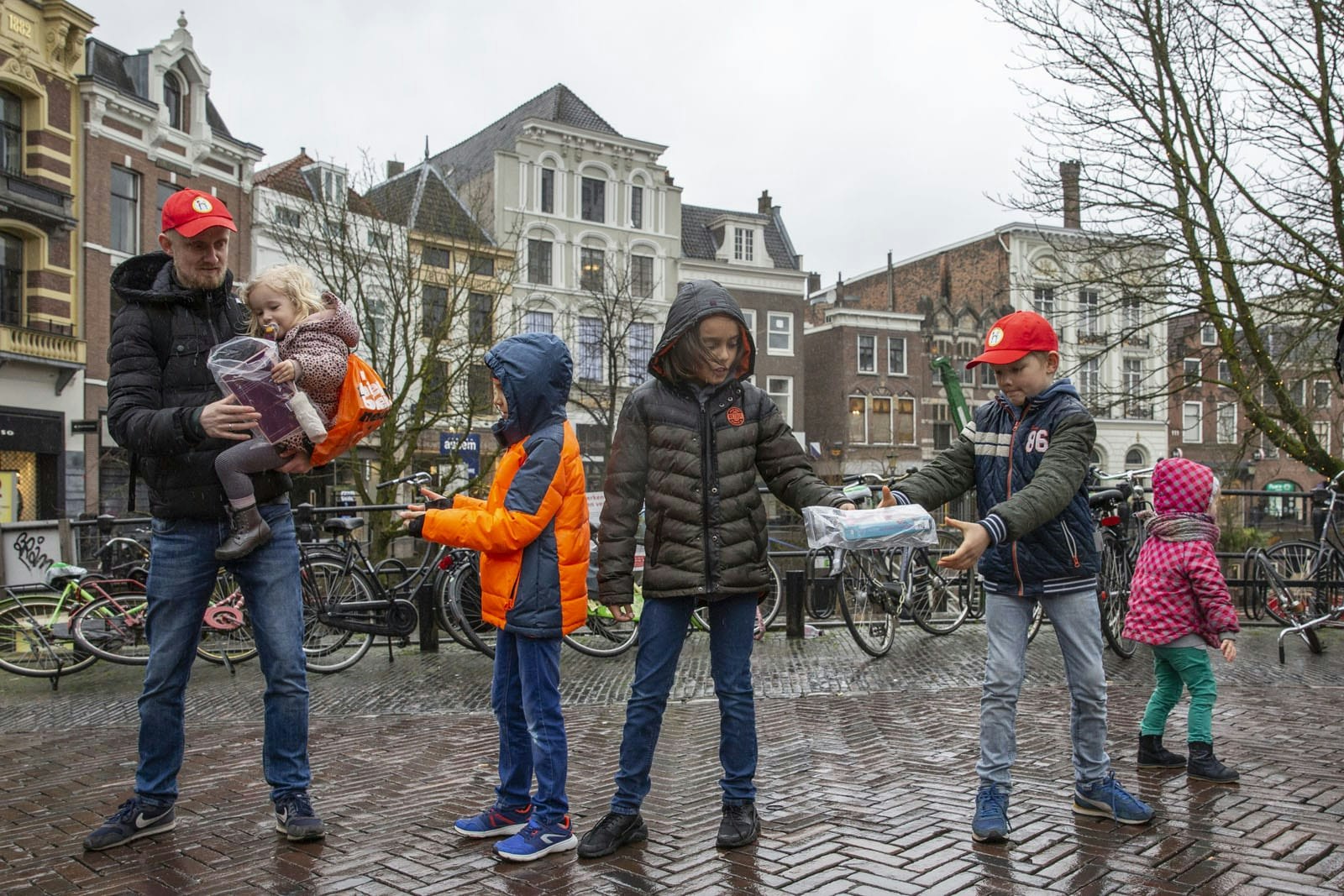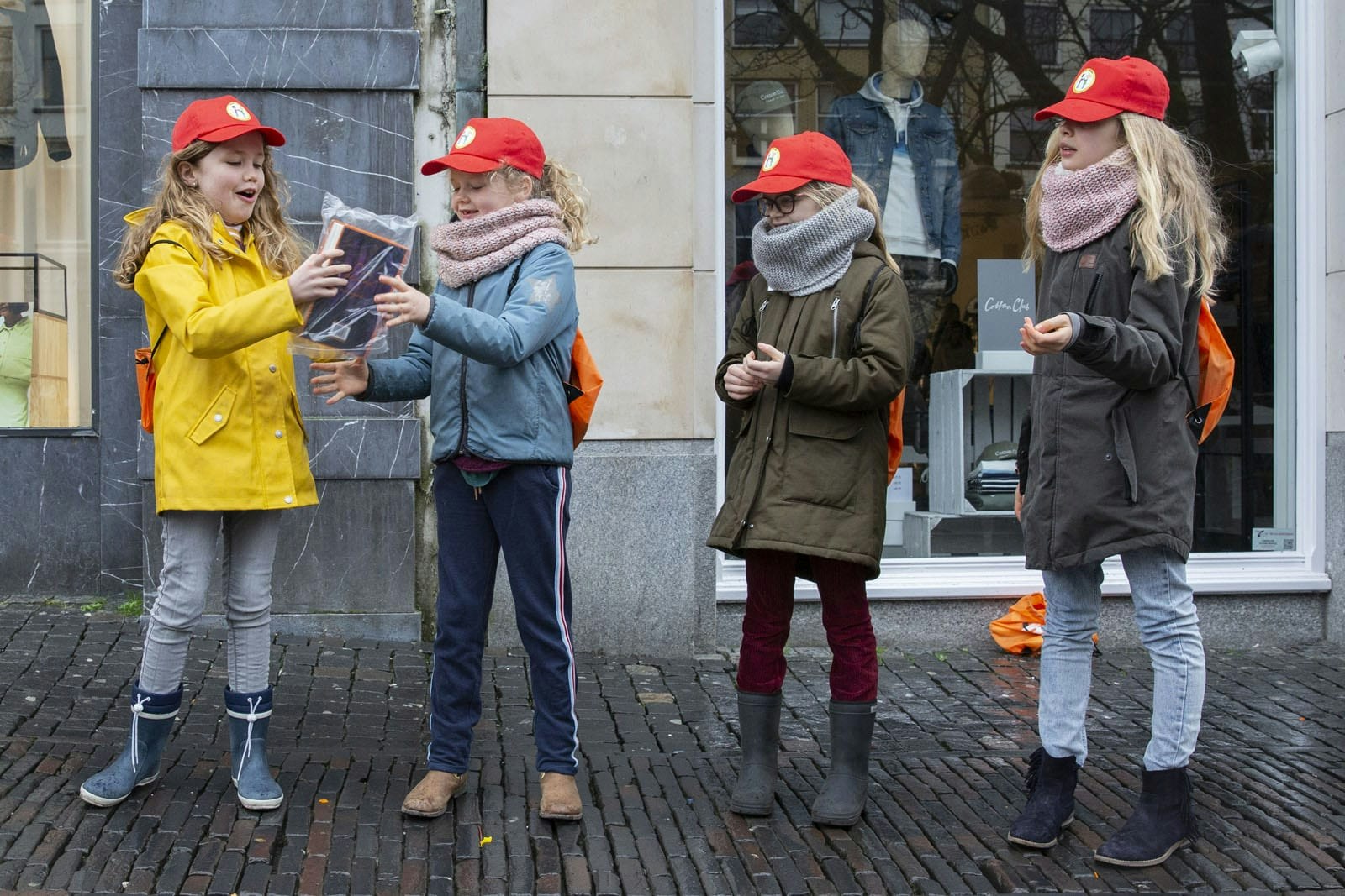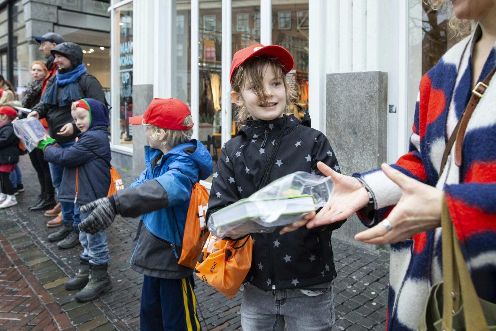 Het KNMI heeft zondag vanwege de harde wind code geel afgekondigd. Dat weerhield de kinderen er echter niet van om hun steentje bij te dragen. Ze trotseerden tijdens de verhuizing weer en wind.