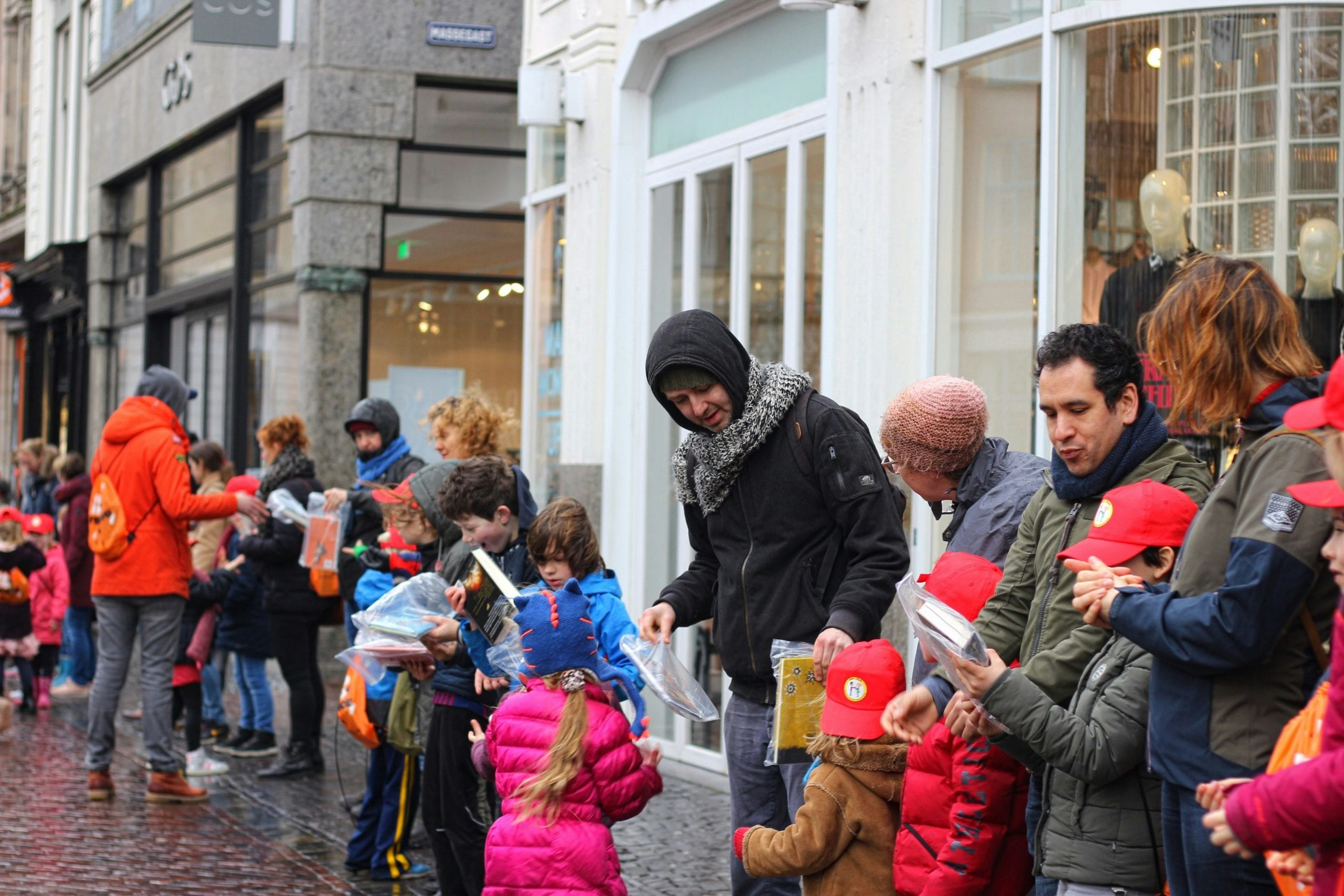 Zo’n 350 kinderen van Utrechtse basisscholen hielpen zondagochtend mee met de verhuizing van de Centrale Bibliotheek. Ze vormden een ketting van de oude naar de nieuwe locatie en gaven één voor één kinderboeken aan elkaar door.