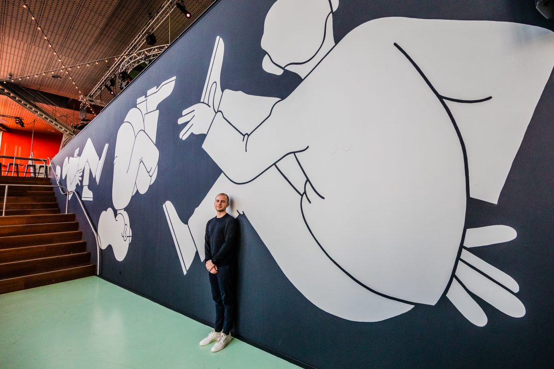Het kunstwerk is speciaal ontworpen voor de foyer in TivoliVredenburg. “In het werk staat beweging centraal. Hoe of waarom de figuren bewegen laat ik in het midden. Het gaat om het gevoel van het ontstijgen aan de dagelijkse routine, het idee van gewichtloosheid”, zegt Kok.
