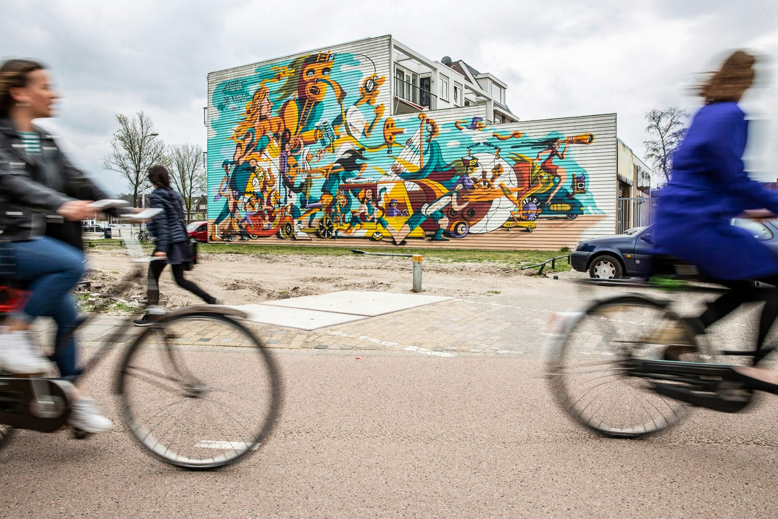 In de zomer van 2017 werd het kunstwerk dat 190 vierkante meter beslaat onthuld. Op de tekening waren verschillende figuren te zien die allemaal onderweg waren. De Vries moest destijds werken met een minimaal budget, waardoor jarenlange blootstelling aan de elementen effect begon te hebben. “Zo groeide er op verschillende plekken mos op de muur”, zegt De Vries.