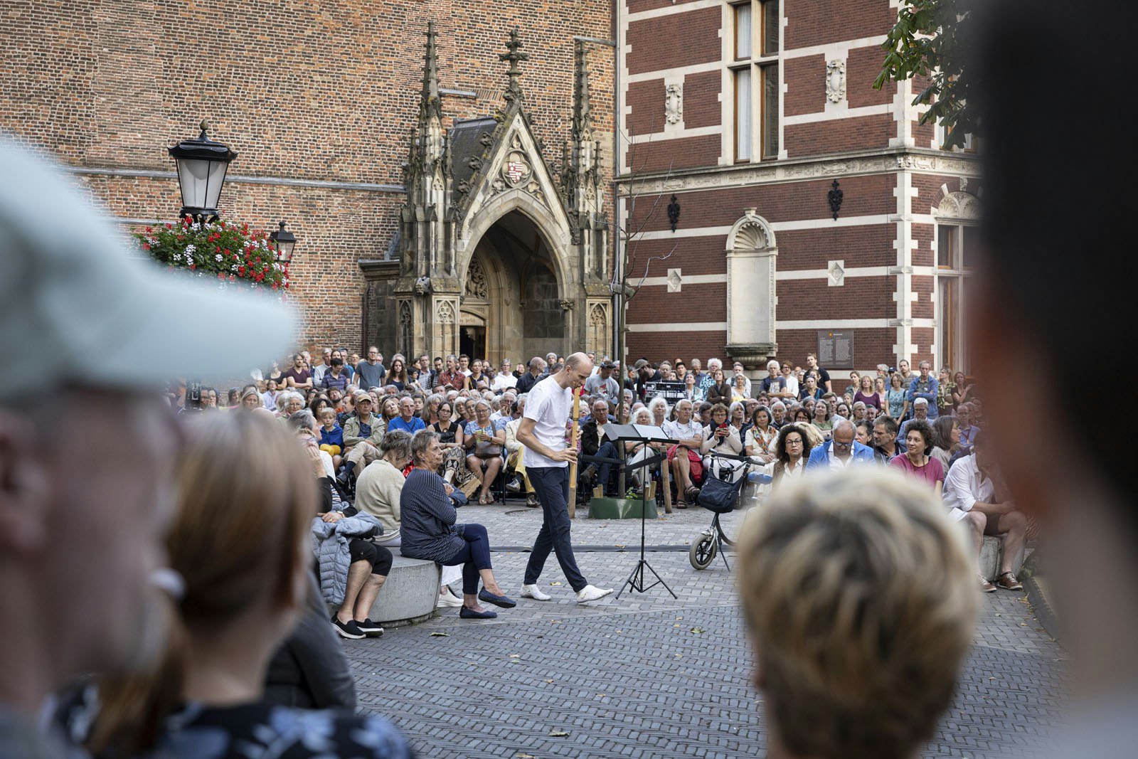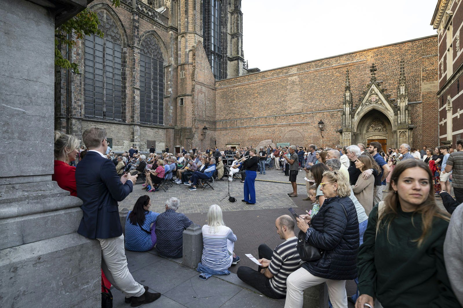 Omdat de Domtoren nagenoeg weer helemaal te zien is, werd zaterdagavond op het Domplein in Utrecht een muzikaal feest georganiseerd. Anne-Maartje Lemereis, componist des vaderlands, had speciaal voor de gelegenheid een muziekstuk gecomponeerd.