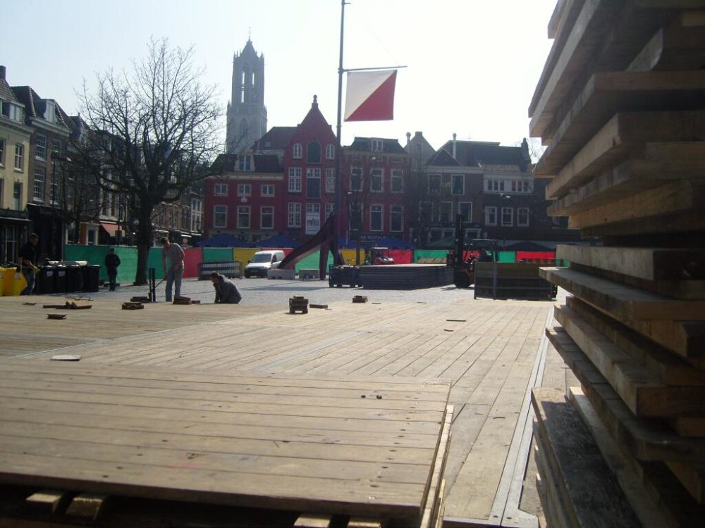 Er wordt druk gebouwd op de Neude. Het theater festival Tweetakt begint op 4 april en het centrale plein in Utrecht wordt weer omgetoverd tot culturele hotspot. Het jaarlijkse festival zal dit jaar samengaan met beeldende kunsttentoonstelling Kaap.