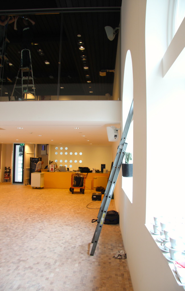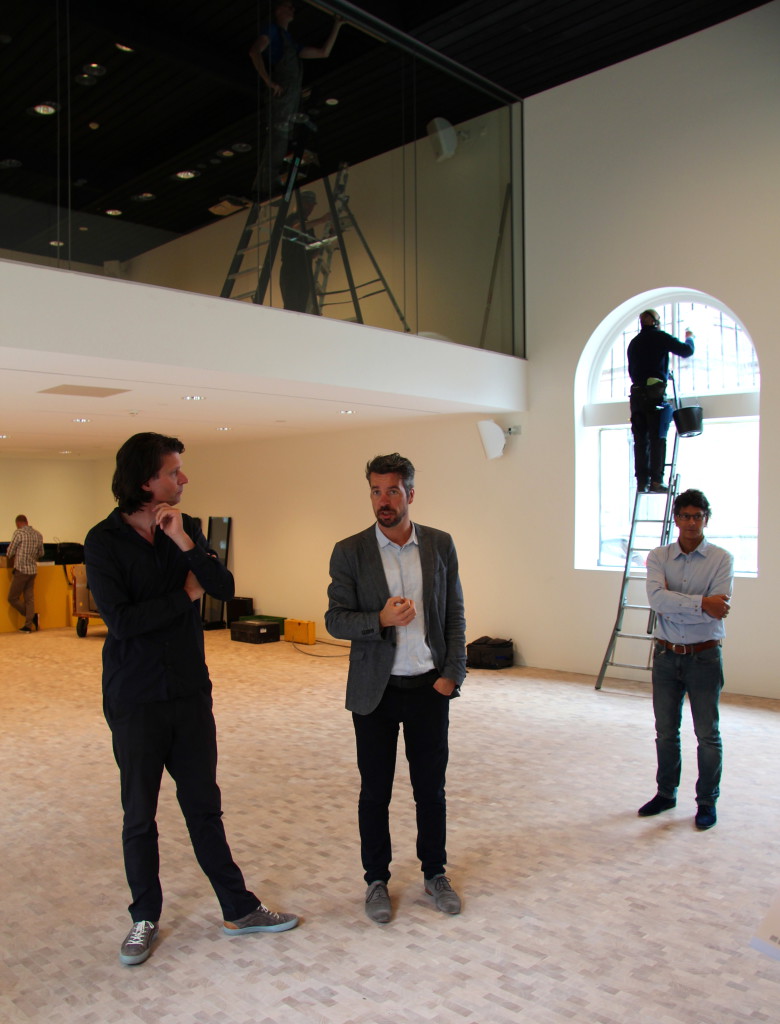 De architect heeft het over de ‘zichtlijnen’ waar nu gebruik gemaakt van wordt. We lopen een rondje door het gebouw, de trap op naar de bovenverdieping van de Tuinzaal. Ook daar wordt er nog druk geklust door een tiental bouwvakkers. Maar, zo verzekert communicatiemedewerker Michelle Schulkens tijdens het bezoek, aanstaande donderdag, bij de officiële opening, dan is alles af.
