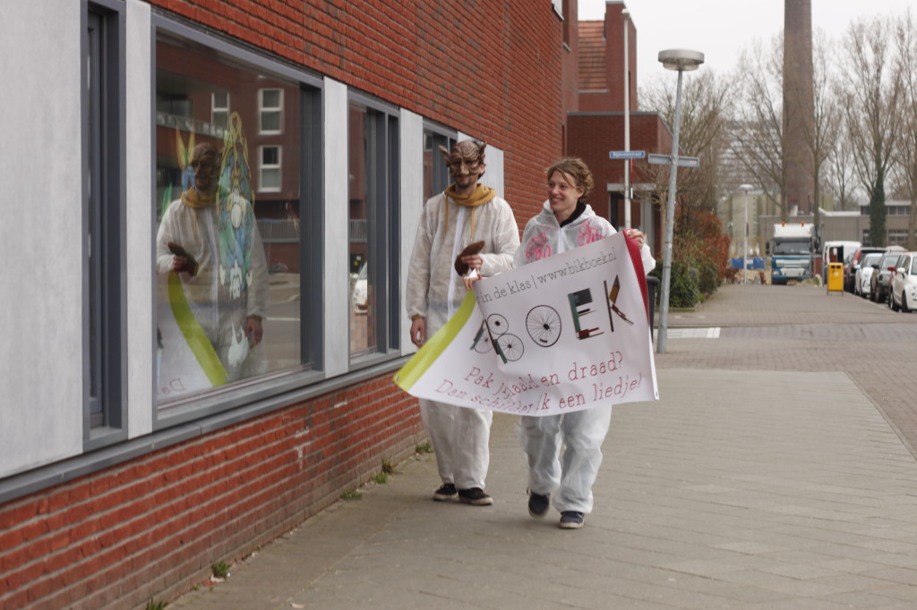 Het kan goed zijn dat kinderen vandaag acht dansende, springende en gillende mensen in witte pakken bij hun school hebben gezien. Op deze manier vroeg het Bikboek Collectief namelijk aandacht voor kunsteducatie.