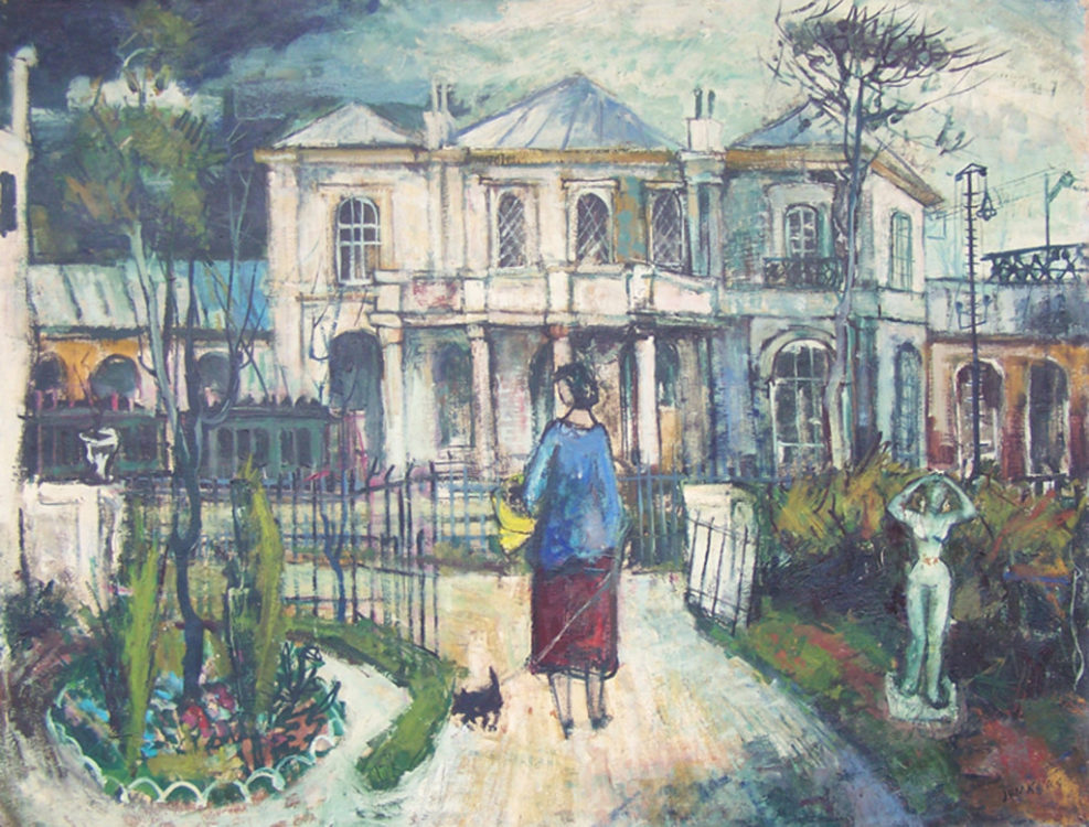 Op het schilderij lijkt het hoofdgebouw te baden in overvloedig zonlicht. Het is (waarschijnlijk) lente want er zit nog geen blad aan de bomen. Een vrouw laat haar hondje uit. In de top van de boom aan de rechterzijde een groot vogelnest, waarschijnlijk uit het jaar daarvoor. Een beeld van een vrouwelijk naakt staat naast het schuingevallen smeedijzeren hek. Het maliebaan Station werd in1874 in gebruik genomen, vanaf de opening werd er weinig gebruikt van gemaakt en daarom in 1939 voor reizigersvervoer gesloten. Het werd daarna gebruikt voor goederen vervoer. In de oorlogsjaren werden veel Utrechtse Joden van dit station door de bezetter weggevoerd naar vernietigingskampen. Een donkere bladzijde in de geschiedenis van dit station. Het toeval wil dat in 1954, het jaar dat Jonkers dit schilderij schilderde, bekend werd dat het Spoorweg Museum hier gevestigd zou worden.