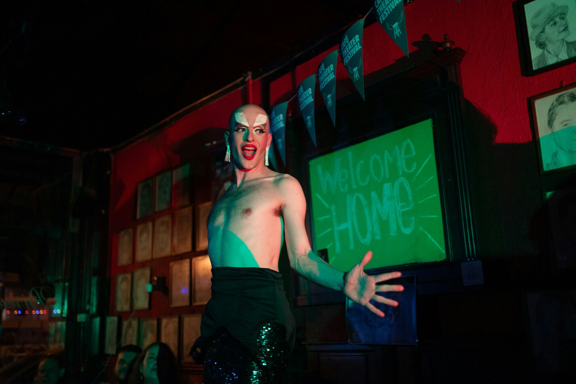 De voorstelling was afgelopen week te zien in Café Binnen Best. In Drag Me Home combineert Bouma teksttoneel, drag performance en meeslepende lipsyncs, in een energieke, persoonlijke zoektocht naar een plek om thuis te komen.