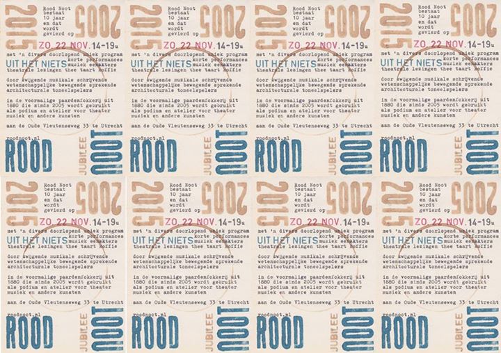 Rood Noot bestaat 10 jaar en dat moet gevierd worden. Sinds 2005 bieden zij in de boerderij bij de Oude Vleutenseweg een podium en atelier voor theater, muziek en andere kunsten. Zondag komen voor de jubileumdag verschillende kunstenaars die eerder te gast waren op Rood Noot terug om ter plekke gloednieuw werk te maken en te presenteren. Er zijn o.a. optredens van de dichter Ruben van Gogh en van jazzmuzikanten Timon Koomen & Remco Menting. Kijk hier voor meer info.