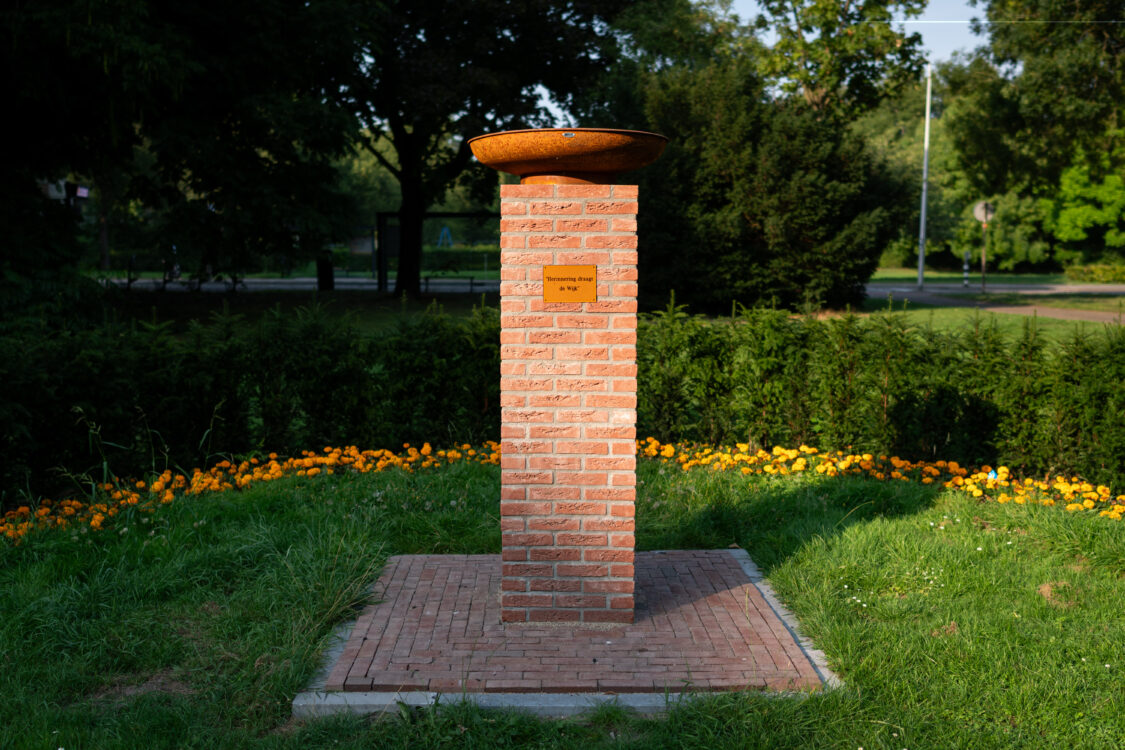 ik vind het een lelijk monument, bakstenen zuil en een verroeste schaal erop, dat had beter gekund