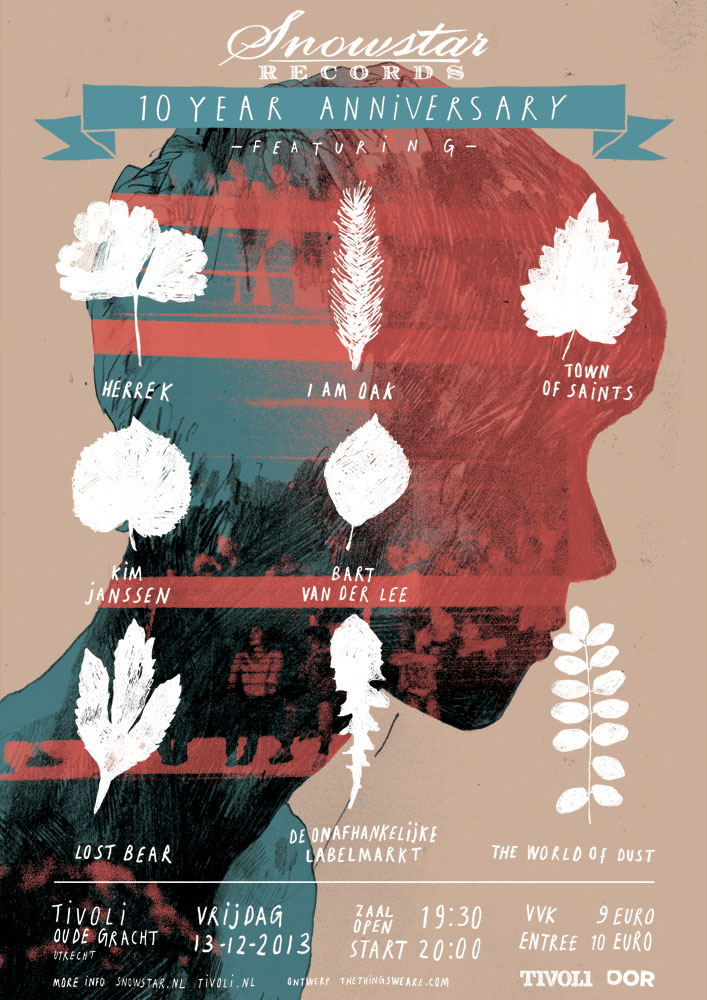 ”Het is tien jaar geleden begonnen toen ik met mijn eigen band een plaat uit wilde brengen”, vertelt Cedric. ”We hadden een label nodig om er op te zetten, dus die taak heb ik toen maar op me genomen.” Nu bestaat het label inmiddels tien jaar, en is de muziek die onder het label uitkomt geëvolueerd van punk rock tot indie singer-songwriter. Snowstar records vertegenwoordigt momenteel 11 artiesten. Van de bekendere singersongwriter I Am Oak, tot de onbekendere Zeeuwe muziek van broeder Dieleman.