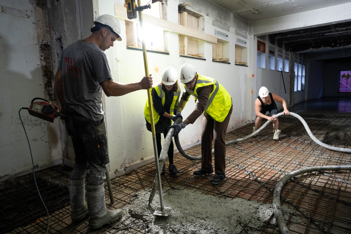 De verbouwing van Magazijn de Zon is in volle gang. Het monumentale pand aan de Oudegracht, tegenover het stadhuis, wordt klaargemaakt voor het Literatuurmuseum/Kinderboekenmuseum. In 2027 opent het museum de deuren. Maandagochtend hielpen wethouder Vastgoed Dennis de Vries en museumdirecteur Valérie Drost een handje mee met het beton gieten.