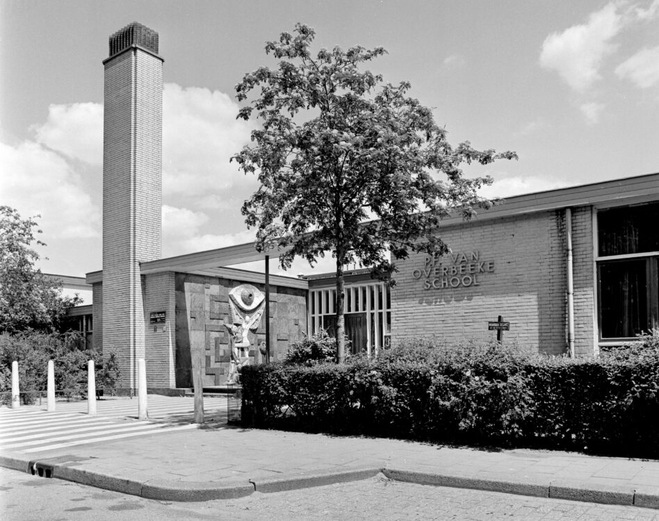 De IVO-school was in 1958 begonnen in noodlokalen met 50 leerlingen. Na twee jaar was de eerste fase van het nieuwe gebouw aan de Barnsteenlaan in Tolsteeg in gebruik genomen. Pas in 1964 volgde bij het tweede bouwdeel de officiële opening. Het was de naamgever van de school zelf die de vlag mocht hijsen. Pieter François van Overbeeke (1896-1974) was ‘een der mensen die de stoot tot het individueel onderwijs heeft gegeven. Het is zijn verdienste dat er in Utrecht onderwijsvernieuwing tot stand kon komen’, zo sprak wethouder Jan de Nooij.