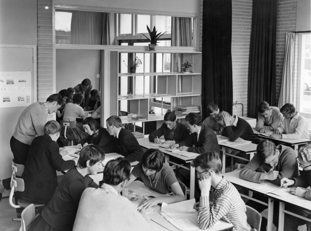 De school telde bij de opening 323 leerlingen. Twaalf leerkrachten gaven er les in zeven klaslokalen, drie vaklokalen en een gymzaal. Er was een zogenaamd vrijwerklokaal en de aula beschikte over een toneelpodium. En een krant schreef: ‘Een eind verwijderd van het hoofdgebouw staat een kleiner gebouwtje dat Het Buitenbeentje is gedoopt. Hier kunnen de kinderen zich oefenen in de expressievakken en zoveel lawaai maken als zij willen.’ De creatieve vakken werden erg belangrijk gevonden. Dat bleek ook uit het grote kunstwerk bij de entree: het keramische wandreliëf Icarus’ Vlucht als ‘symbool van de onbezonnenheid van de jeugd’. Het was ontworpen door Nicolaas Wijnberg en uitgevoerd door de Porceleyne Fles in Delft. De IVO-school werd bij de leerlingen geliefd om de prettige, vrije sfeer en om de klassenfeesten en werkweken in het bijzonder. Een van de leerlingen was Herman van Veen.
