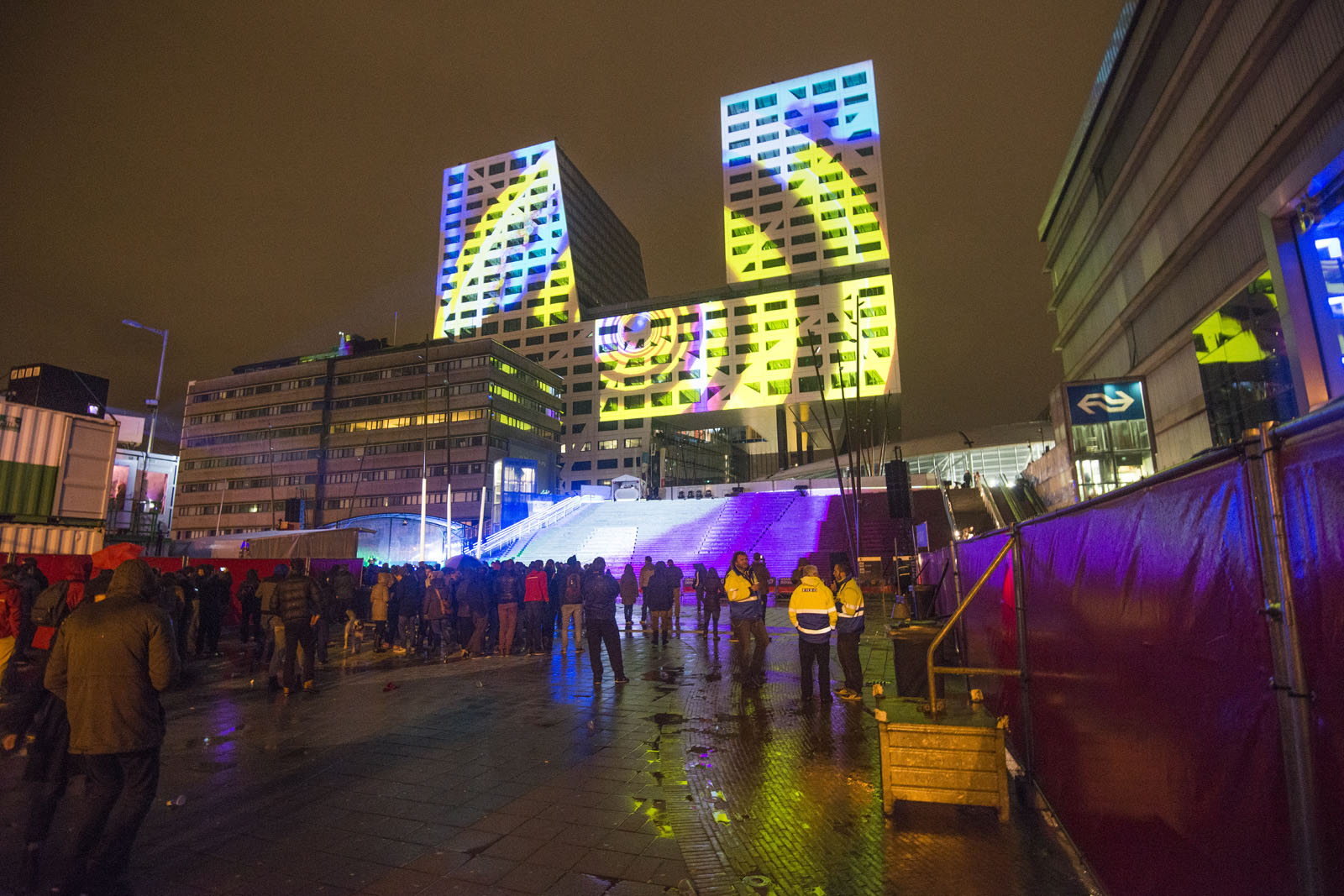 Ik was er ook even langs gegaan nadat ik het op twitter zag langskomen. Wel grappig die beamers op het stadskantoor, maar verder is er ook niet zoveel aan. Nare muziek ook.