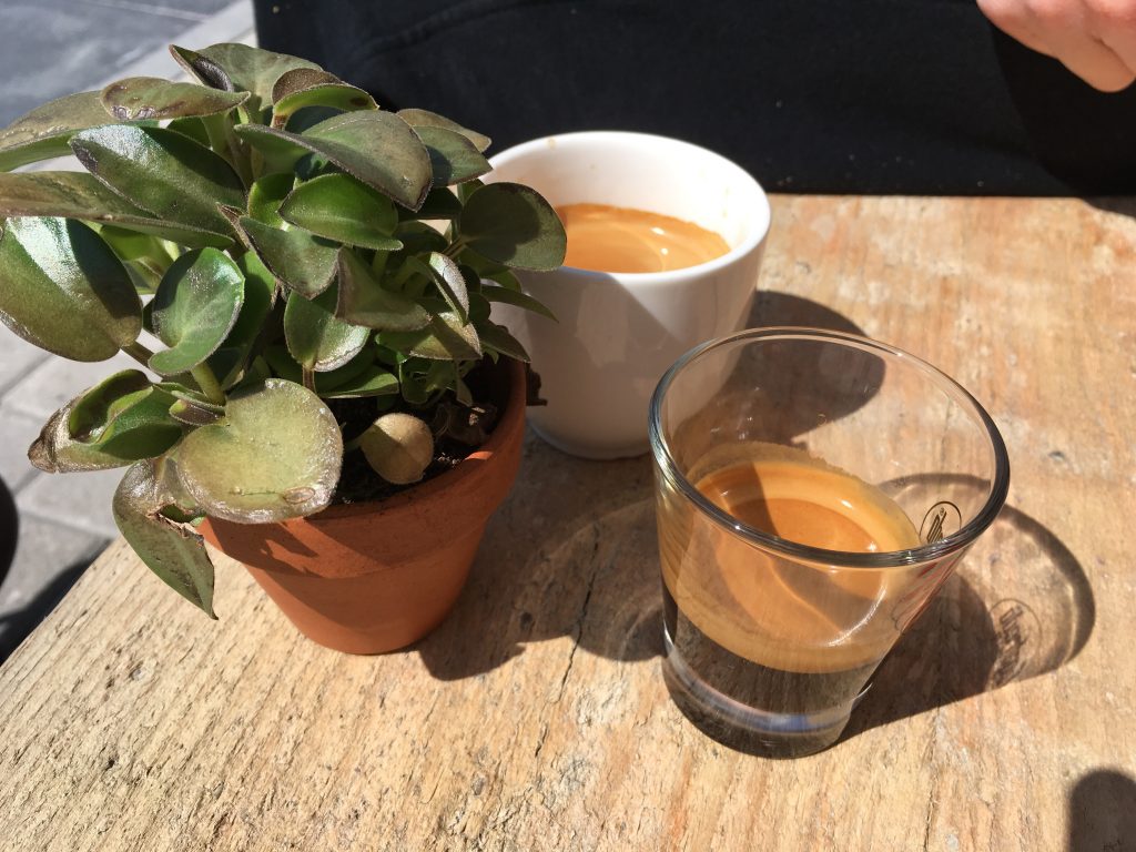 Ondanks het lage aantal gasten duurt het een half uur voordat we onze eerste bestelling op tafel hebben. Die blijkt ook nog eens een tijdje op de hoek van de bar te hebben klaargestaan, aangezien de ober komt checken of de latte macchiato niet te veel is afgekoeld. Beetje inkomen nog dus, maar gelukkig blijkt de temperatuur in orde. De verhouding melk-koffie had iets beter gekund. De cappuccino bevalt daarentegen uitstekend. Goed schuim, goed sterk en een plaatje om te zien. De zwarte koffie is behoorlijk ruig: een sterke en stevige bak. De espresso is prima, maar had wellicht wat fruitiger gemogen – dat is een kwestie van smaak.