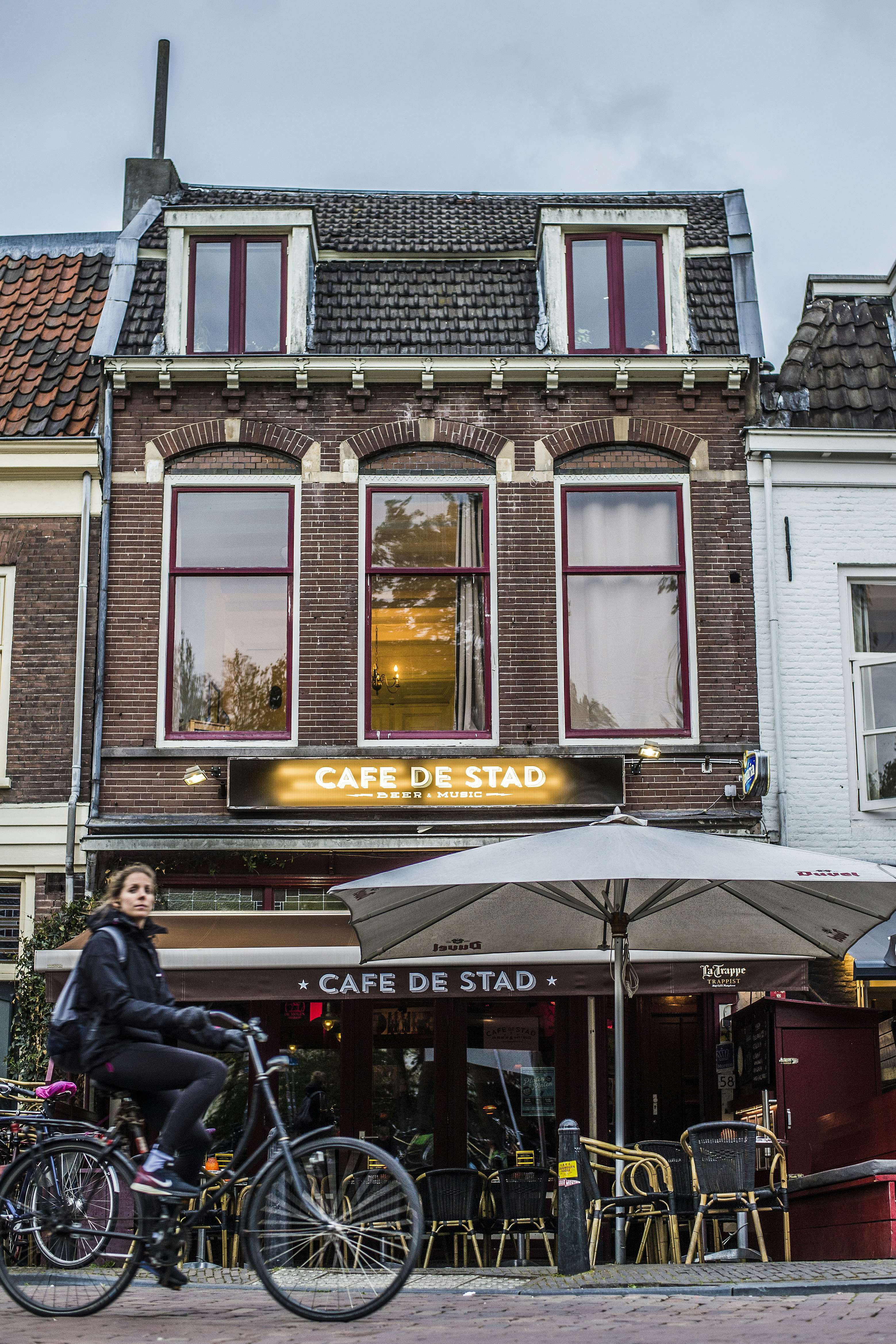 Egbert Aben, nu 55 jaar, begon in 1999 met compagnon Anton van der Schot Café de Stad. Ze hadden het net zo goed Café de Muziek kunnen noemen; de muren hangen vol met platenhoezen. Van de Sex Pistols tot de Utrechtse Nozems. Die platen worden vaak gewisseld. Tijdens het Smartlappenfestival bijvoorbeeld bepalen Nederlandse platen de inrichting en met het evenement Ska at the Stad hangt er uitsluitend ska en reggae aan de muur. De vier platen van The Smiths tegenover de bar zijn echter heilig, die hangen er altijd. “De beste band van de jaren tachtig.” De rest wordt onder het scherpe oog van Aben zo nu en dan zorgvuldig vervangen. “Ze proberen mij wel eens te fucken door een plaat te veranderen. Zo hadden ze er een keer Meat Loaf tussen gezet, die vind ik zó slecht. Toen ik binnenkwam, zag ik het gelijk. Dat vonden ze ongelofelijk.” In De Stad treden veel bandjes en singer-songwriters op. Achter in het café is een verhoging waar Aben dan een podium op bouwt. Hij klapt de banken in, tilt de tafels en stoelen weg en sleept de muziekinstallatie op z’n plek. “Er moet wel reuring in de tent zijn; met alleen bier verkopen, red je het niet.”