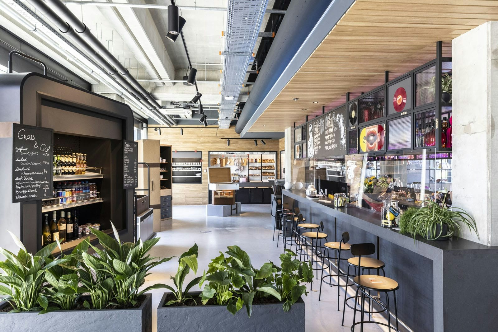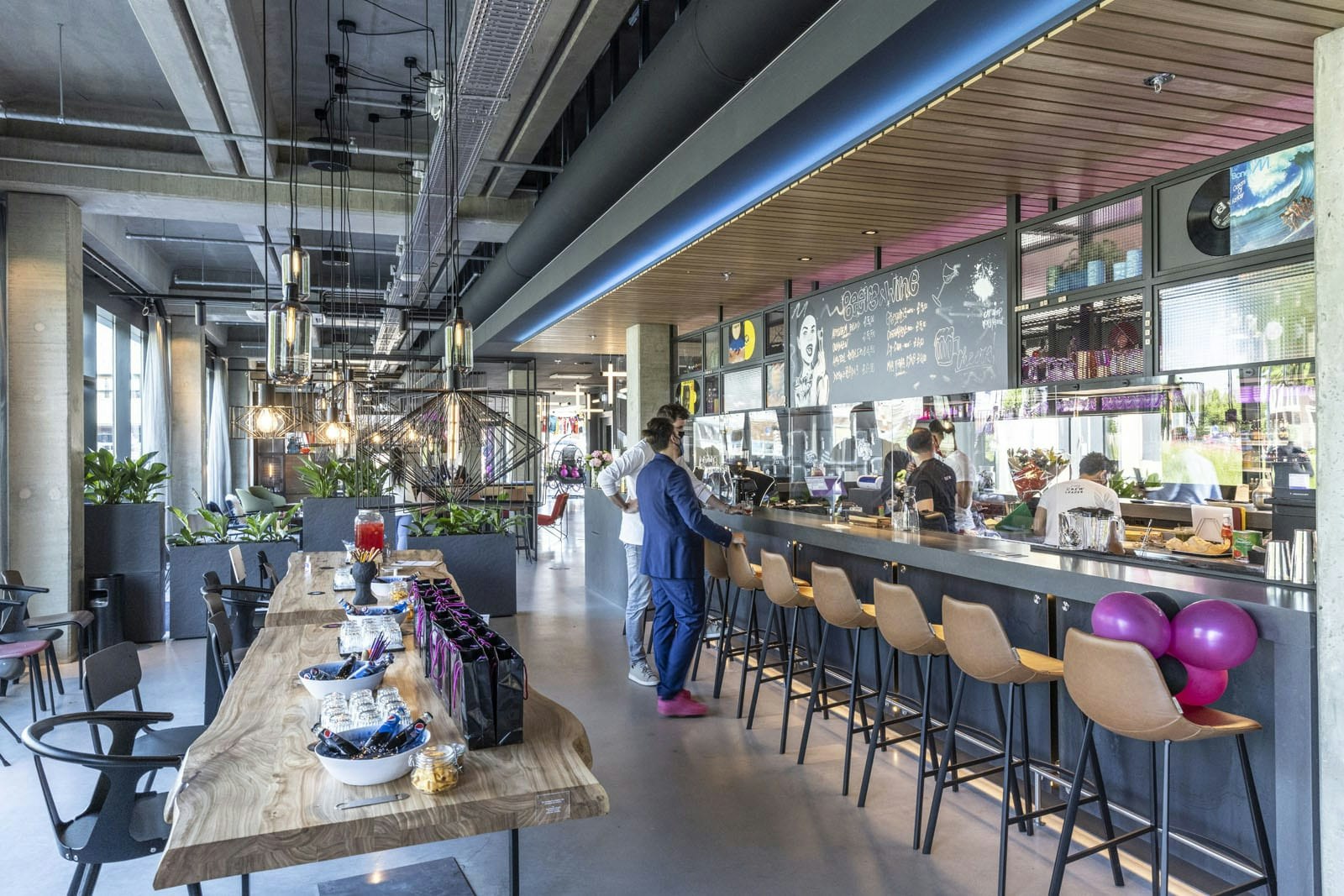De ontvangst- en horecaruimte ziet er een beetje uit als de moderne snackbar. Plantje hier en daar voor de hippe en duurzame look, maar je eet er uiteindelijk gewoon een frikandel.