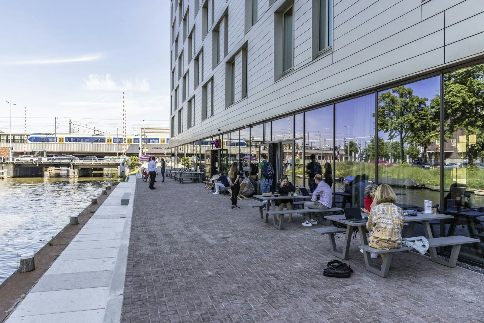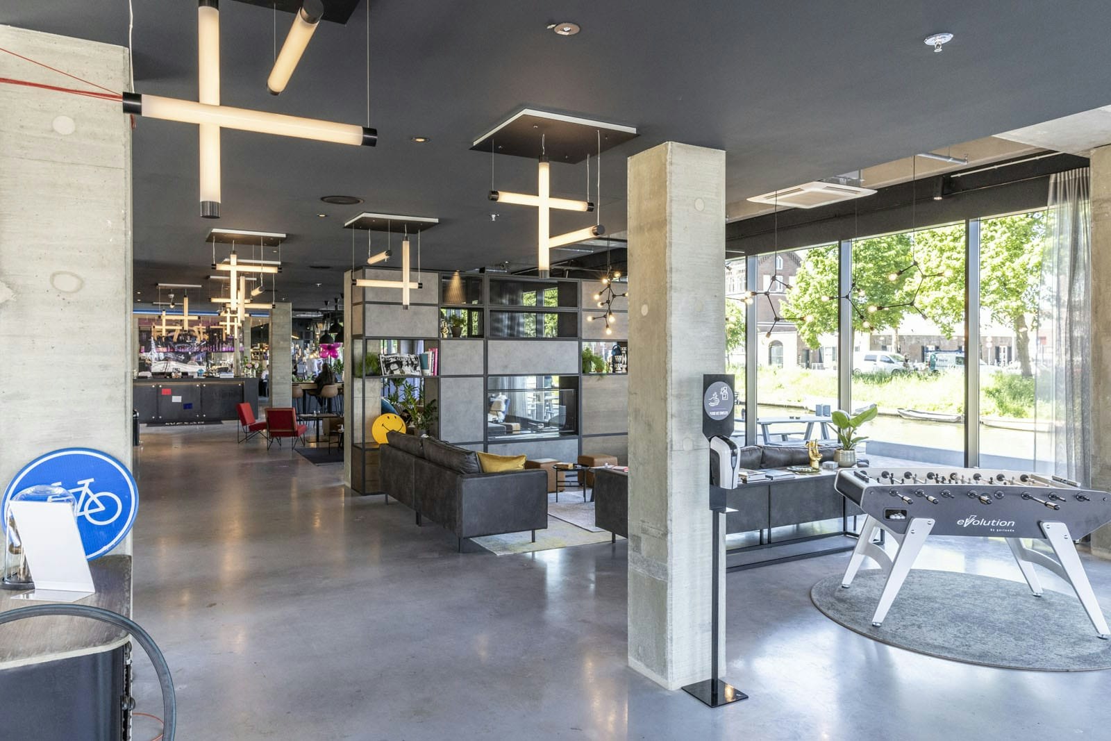 Een deel van de begane grond van het hotel is voor iedereen toegankelijk. Zo is er een aantal zithoeken en werkplekken, een horecagedeelte en aan de Vaartsche Rijn is een terras. Ook worden er fietsen verhuurd voor zowel gasten als mensen van die niet in het hotel overnachten.