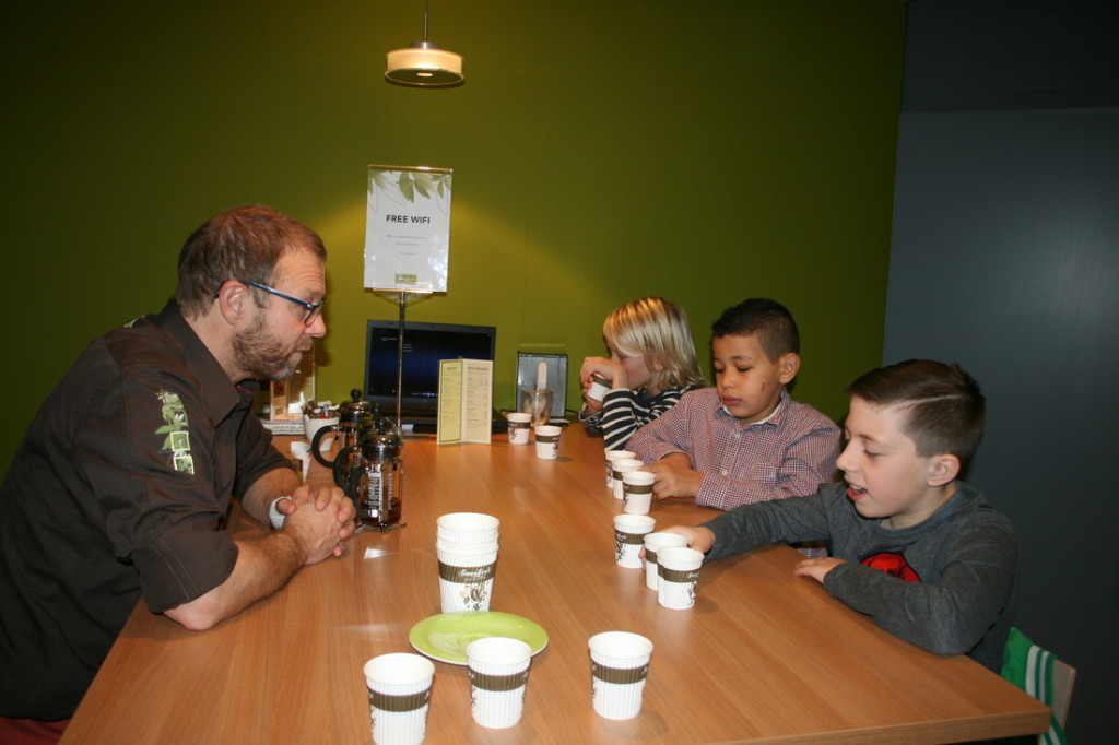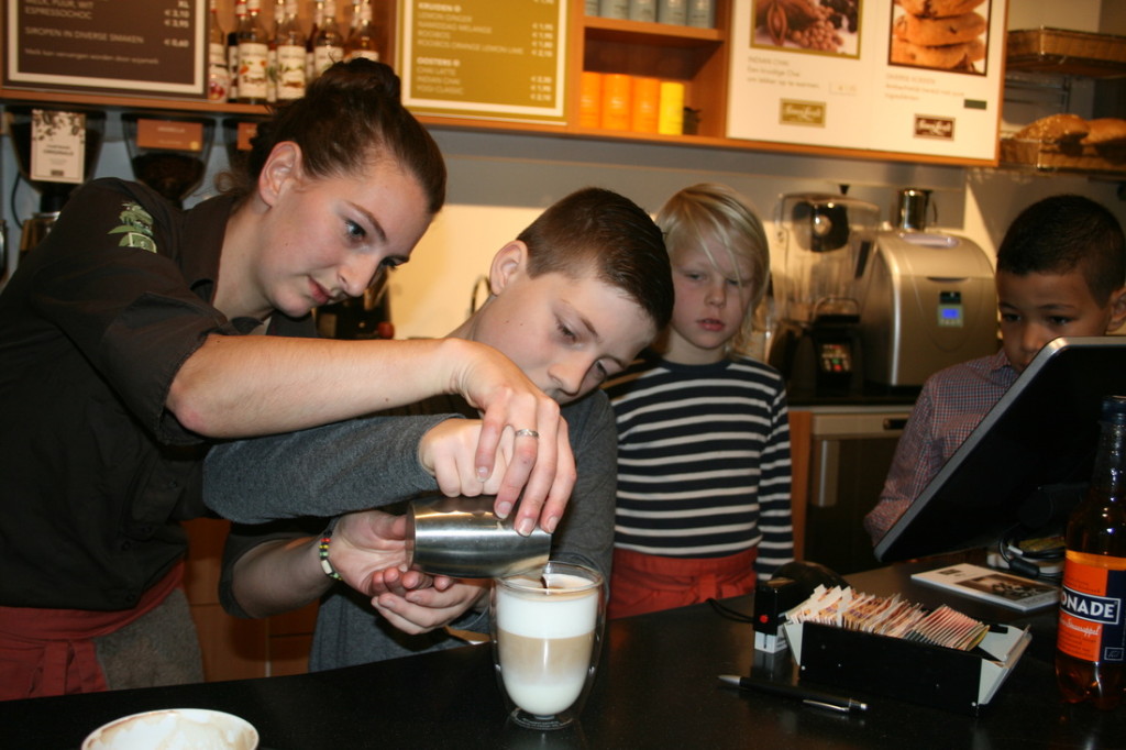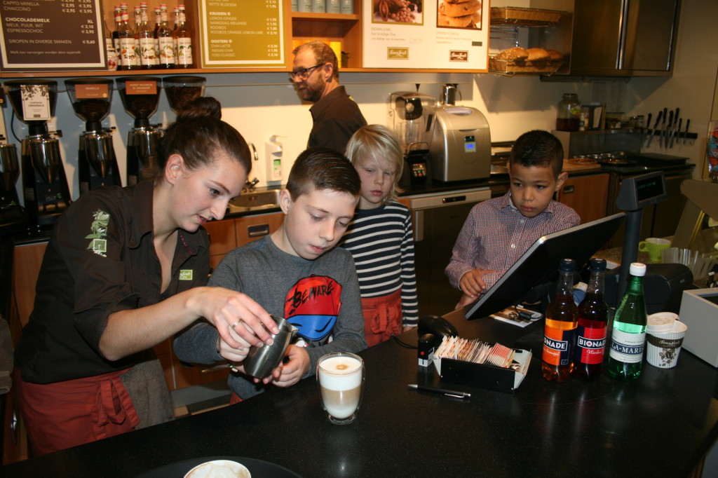 Brandmeester’s, The Village, Koffie & ik, het zijn slechts een paar van de vele – goede – koffietentjes die Utrecht kent. Koffie zetten is een vak. Vandaar ook dat kinderen van de Parkschool de kans kregen om tijdens een bliksemstage een kijkje in de keuken, of in dit geval achter de koffiebar, te nemen.