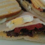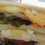 Zo op het eerste oog is er weinig mis met de geserveerde sandwich, die redelijk voldoet aan de strenge eisen van de internationaal gelouterde receptuur. Om de bediening duidelijk te maken dat het hier menens is, heb ik de Michelingids op tafel gelegd en begin ik ogenblikkelijk foto’s te maken. Drie lagen toast, zoals het hoort, knapperige sla. De tomaat is vers en er zit ook ei op het broodje. Gekookt gelukkig, want een gebakken ei is best te pruimen bij het ontbijt op zaterdagochtend maar daar wil ik op een clubsandwich niet mee worden lastiggevallen. De sandwich komt volgens de menukaart met ‘cajun-mayonaise’, een lichtpittige mayo met wat (gedroogde) rode peper. Die is ook licht op de laagjes toast gesmeerd en doet daar dienst als cement. Dat mag, want weinig is ergerlijker dan een broodje dat uit elkaar valt als je er naar kijkt. Tot zover het goede nieuws.