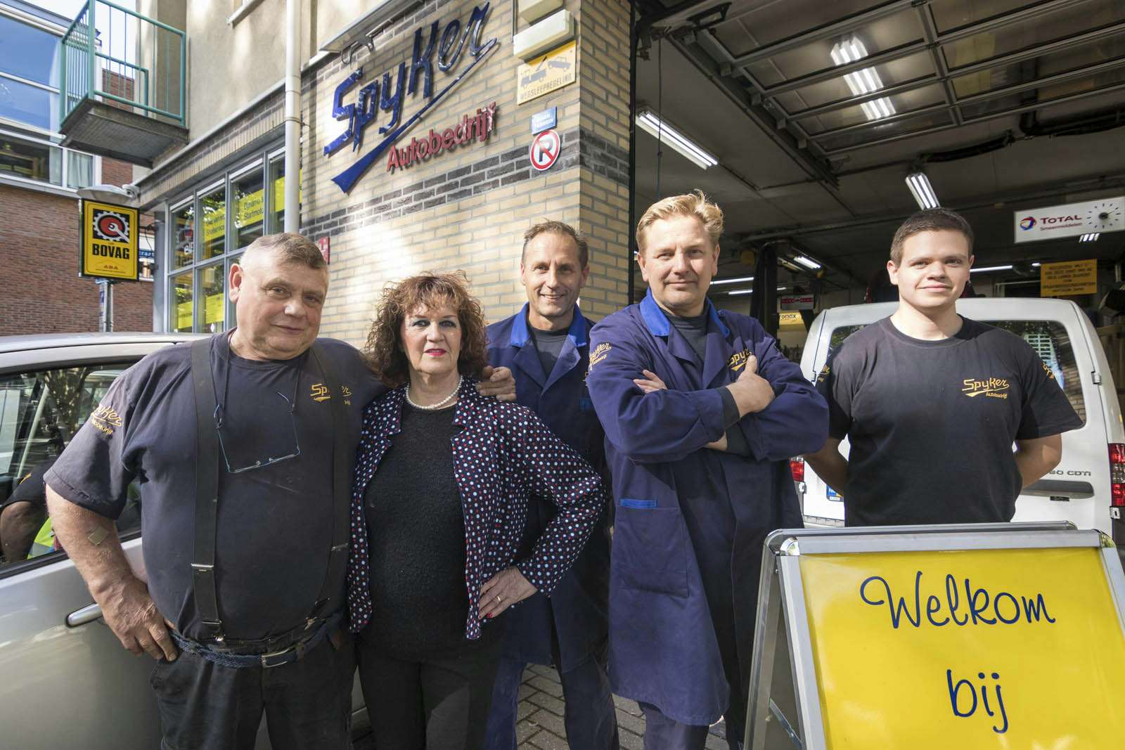 De hele familie is aanwezig in het autobedrijf en dat zorgt voor een gezellige sfeer. Jan Spijker en zijn zoon Jan Spijker (jr.) zijn druk bezig met onderhoudswerkzaamheden aan een auto. Leerling Jarno loopt er ook rond en Joke Spijker komt vriendelijk lachend het kantoortje uitgelopen. “Waar is Willem?”, vraagt ze. “Die is nog even snel zijn haar goed doen voor de foto”, grapt Jan (jr.).