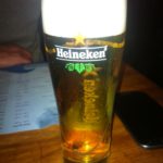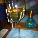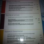 Aangezien de bediening vrij weinig verstand van wijn blijkt te hebben (wit adviseren bij vis en rood bij vlees, tja) is het verstandig dat men de kaart heeft opgedeeld in smaakbelevingen: ziltige droge en volle krachtige witte wijnen; soepele fruitige en volle krachtige rode wijnen. Bij iedere categorie is ook een suggestie voor de bij de wijnen behorende gerechten gegeven. Omdat er niet veel wijn per glas te verkrijgen is was onze keuze beperkt. Wij dronken bij onze voorgerechten de Il Sole Bianco, uit de categorie vol en krachtig wit. Een ongecompliceerde witte wijn onder een schroefdop. De wijn komt uit het warme, vulkanische Sicilië en heeft toch wel zuren en frisheid, maar verder niets bijzonders. Bij het hoofdgerecht kozen we van hetzelfde huis de Il Sole Syrah: een rode wijn met veel tannine en een pepertje in de afdronk. Deze rode Siciliaan kon ons meer bekoren dan zijn witte huisgenoot. Verder stonden er geen wijnen op de kaart die ons konden verleiden tot het bestellen van een hele fles.