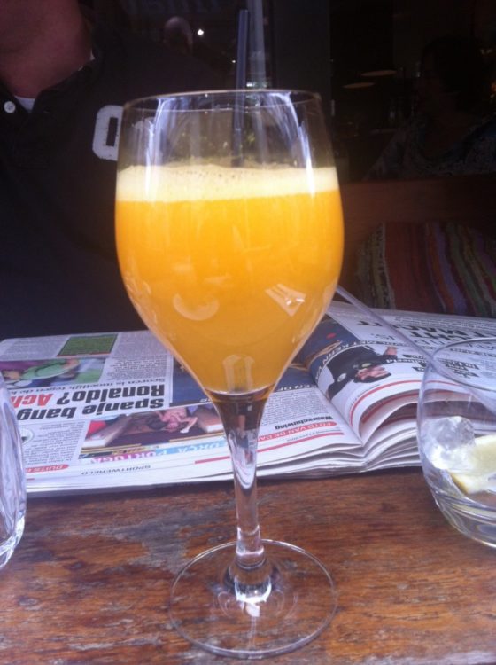 - Drankjes: VERSE JUS! Voor mijn neus vers geperst, hier is geen twijfel over mogelijk, heerlijk. Cola Light uit een flesje en een lekkere warme koffie verkeerd, wel met een ietwat grote schuimkraag.