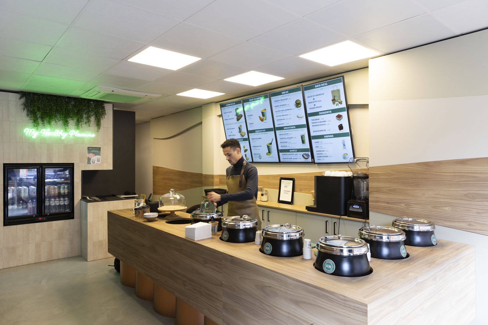 In de zaak op de Potterstraat is er keuze uit zes soepen: drie om te drinken en drie dikkere soepen ‘om te eten’, zoals rode linzensoep. Dat is ook meteen Kariems favoriet. “De fastfoodindustrie kan wel wat balans gebruiken”, legt hij uit. Ondertussen is hij druk bezig om een grote bestelling klaar te maken voor een van de kantoren in de buurt. “Het meeste fastfood bestaat uit veel te veel suiker, zout en vet. Dan kan het wel betaalbaar zijn, maar je betaalt de rekening alsnog later met je lichaam. Aan onze soepen voegen we niks toe, geen suikers, maar alleen groente.”