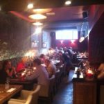 Rood is de overheersende kleur in San Siro. Mijn tafelgenoot heeft associaties met Moulin Rouge, ik vind dat dit het restaurant vooral een warme uitstraling geeft. Bij binnenkomst rechts een bar, links een aantal hoge tafels met stoelen. Dat is de plek voor de borrel en kleine hapjes. Naar achteren doorlopend, het restaurantgedeelte. Het is op deze koopavond gezellig druk binnen. We bestellen een biertje.