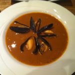 Vlees is goed gesneden en prima op smaak. Parmaballetje een heerlijk pluspunt. De smakelijk geurende vissoep heeft als vulling zes mosselen. Niet spectaculair verder en naar onze mening iets te zout. Bij de soep weer een nieuw schaaltje brood en stengels.