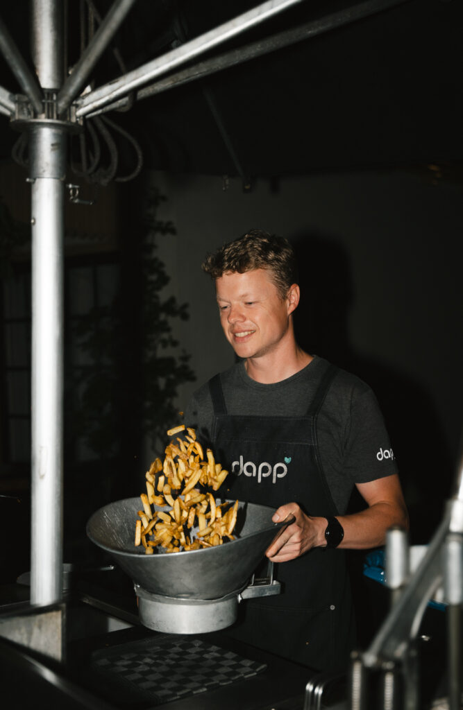 Het begon voor oprichter en eigenaar Siem van Bruggen ruim tien jaar geleden met een bakfiets op de biologische markt in Utrecht. Daar verkocht hij zijn friet. Inmiddels heeft hij een Dapp Frietwinkel in Utrecht en in Leiden én staat hij eind september op het wereldkampioenschap friet in Frankrijk, ofwel de French Fries World Championships.