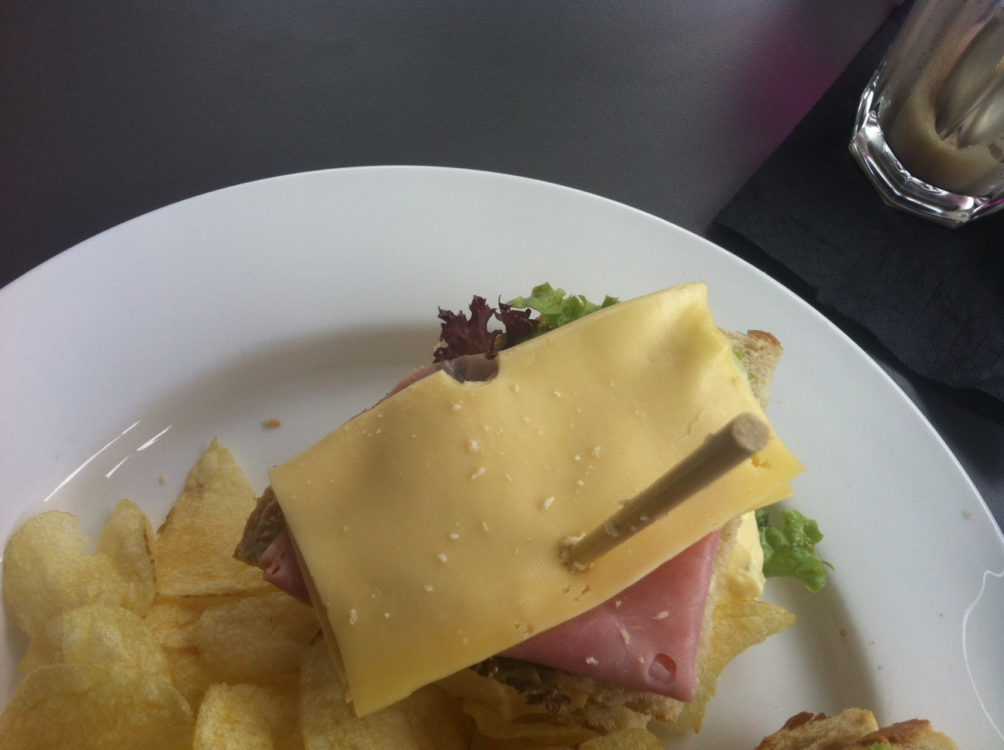 Op de kaart ziet de CS er veelbelovend uit: rijkelijk belegd met boerenham, kaas, eiersalade, gerookte kip, aïoli en geserveerd met chips voor € 9,00. Alles klopt! Behalve het rijkelijk belegd verhaal. Summiere kwantiteit en kwaliteit.