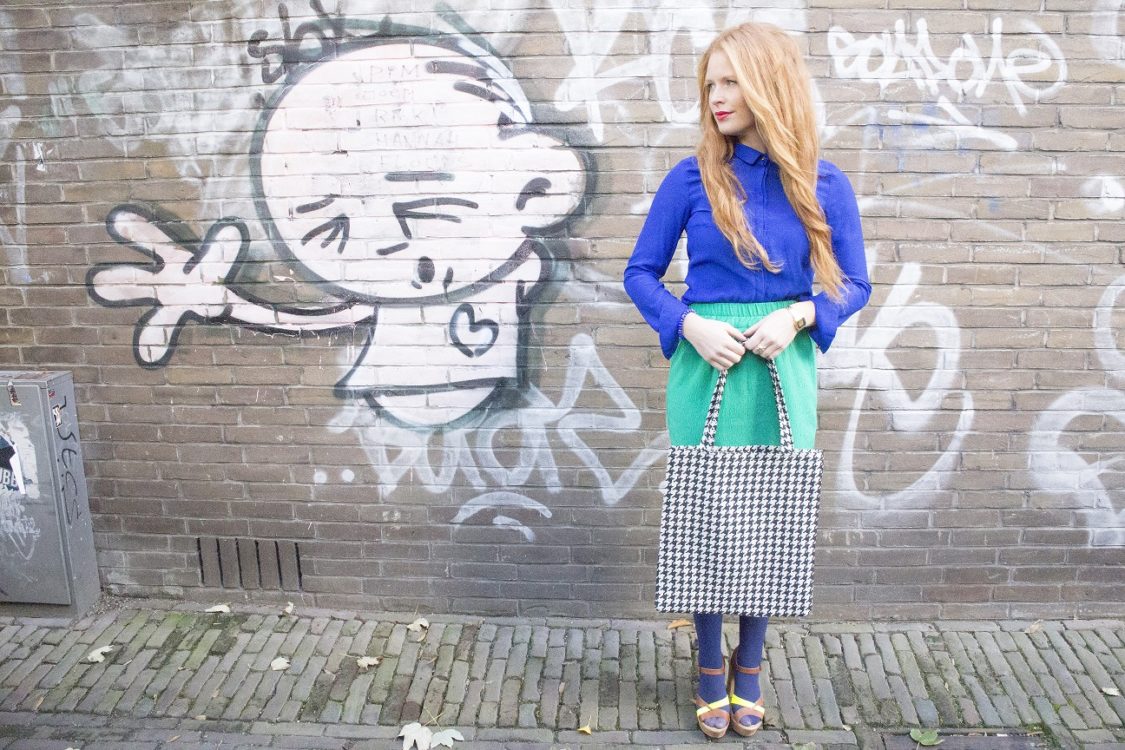 … “in elke tas leg ik een stukje van mezelf…”. Als ik de foto goed bekijk zie ik dat de Tas leeg is (ik ben van het visuele slag). Mogelijk iets met gestoorde kleurperceptie, en de taille van het rokje.