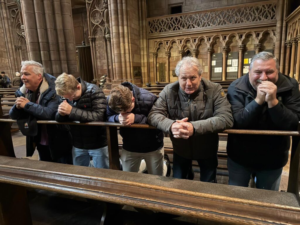 De Galgenwaard zag er wat sinister uit. Donkere wolken. En dat was te merken. NEC kwam op bezoek. Een vol uitvak. En zo hoort het. Er moest gewonnen worden. Een aantal supporters heeft in Freiburg de stoute schoenen aangetrokken en gezamenlijk deden zij het gebed in een prachtige kerk, biddend voor een positieve ommekeer.