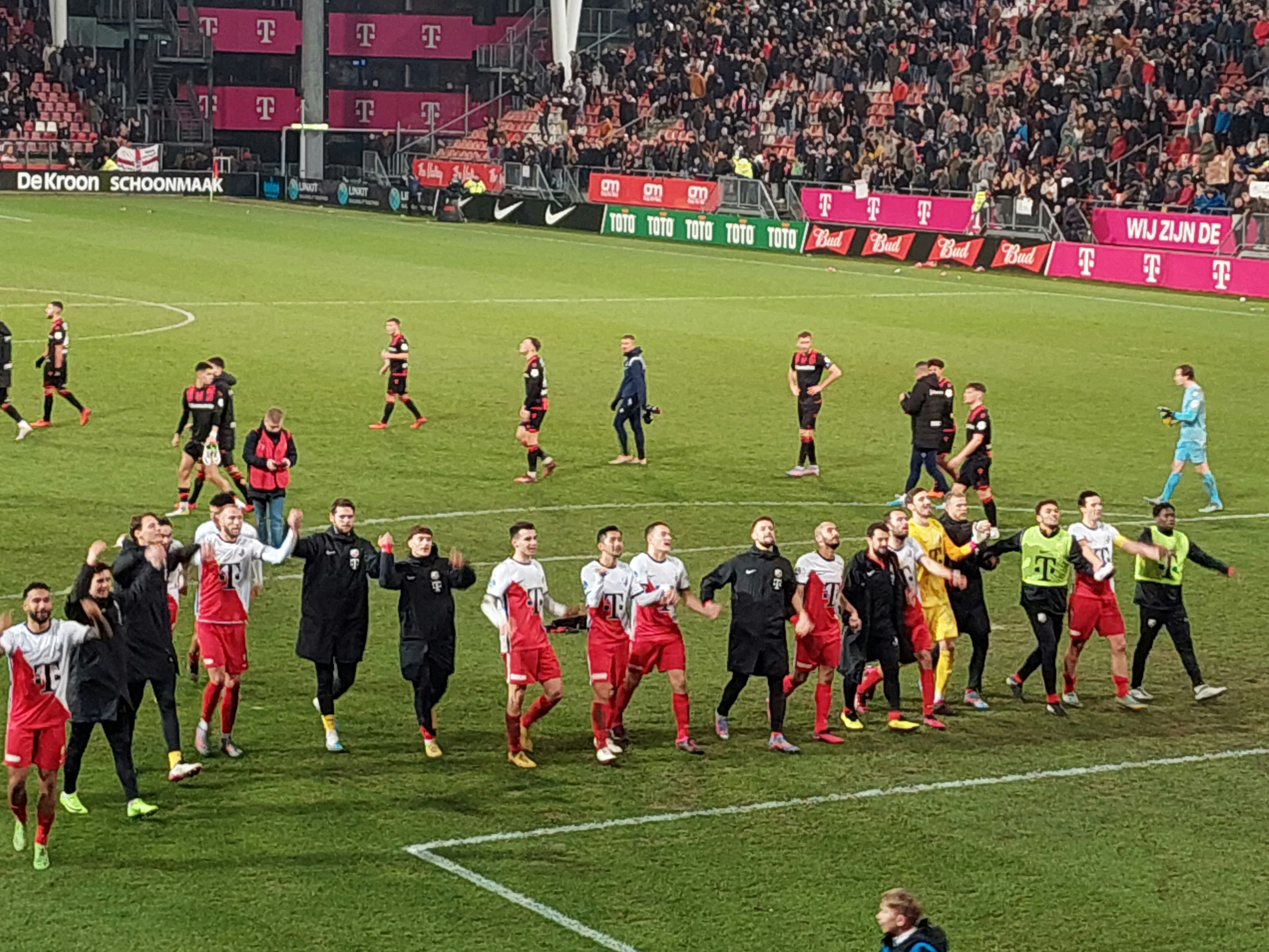In de tweede helft was het iets beter. Het was ons duidelijk. Wie scoort die wint. FC Utrecht bleef fanatiek de aanval zoeken. Dat resulteerde in een penalty. Klusje voor Douvikas. Matig ingeschoten maar wel al zijn elfde doelpunt. De 10 minuten blessuretijd brachten geen verandering in de stand. De drie punten bleven in de Galgenwaard. Het feestje werd gevierd in het stadion. Zelfs toen de spelers al naar binnen waren, feestte men op de Cityside nog even door. Mede door een overtollige stortvloed aan alcoholische dranken ging dat iets te uitbundig.