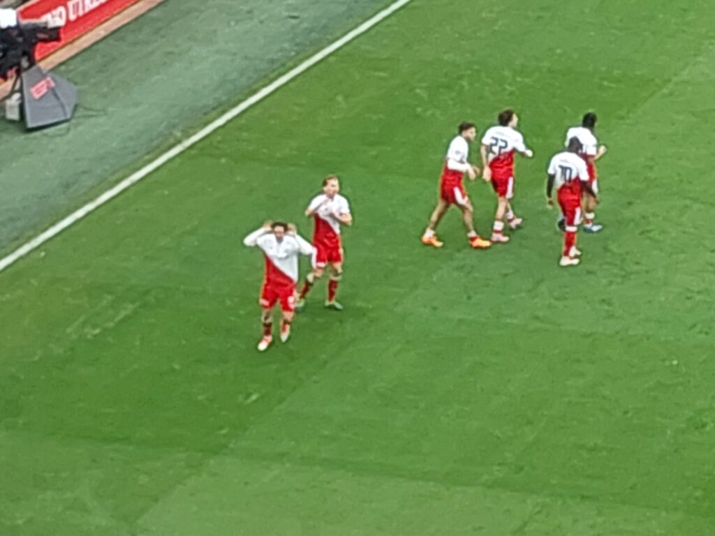 Niet dat we er veel mee opschoten, maar we verveelden ons niet. Wel bleef het oppassen voor Lammers, zal je net zien dat hij scoort. We gingen rusten met 0 – 0. Wel nog opvallend, tijdens de wedstrijd klonken er een soort vuurwerkgeluiden uit de geluidsboxen, hangend aan de Bunnik-side. Supporters deden de rest. Dit dan weer tot ergernis van de duizend fans uit Enschede. Binnen tien minuten FC Utrecht met de 1 – 0.
