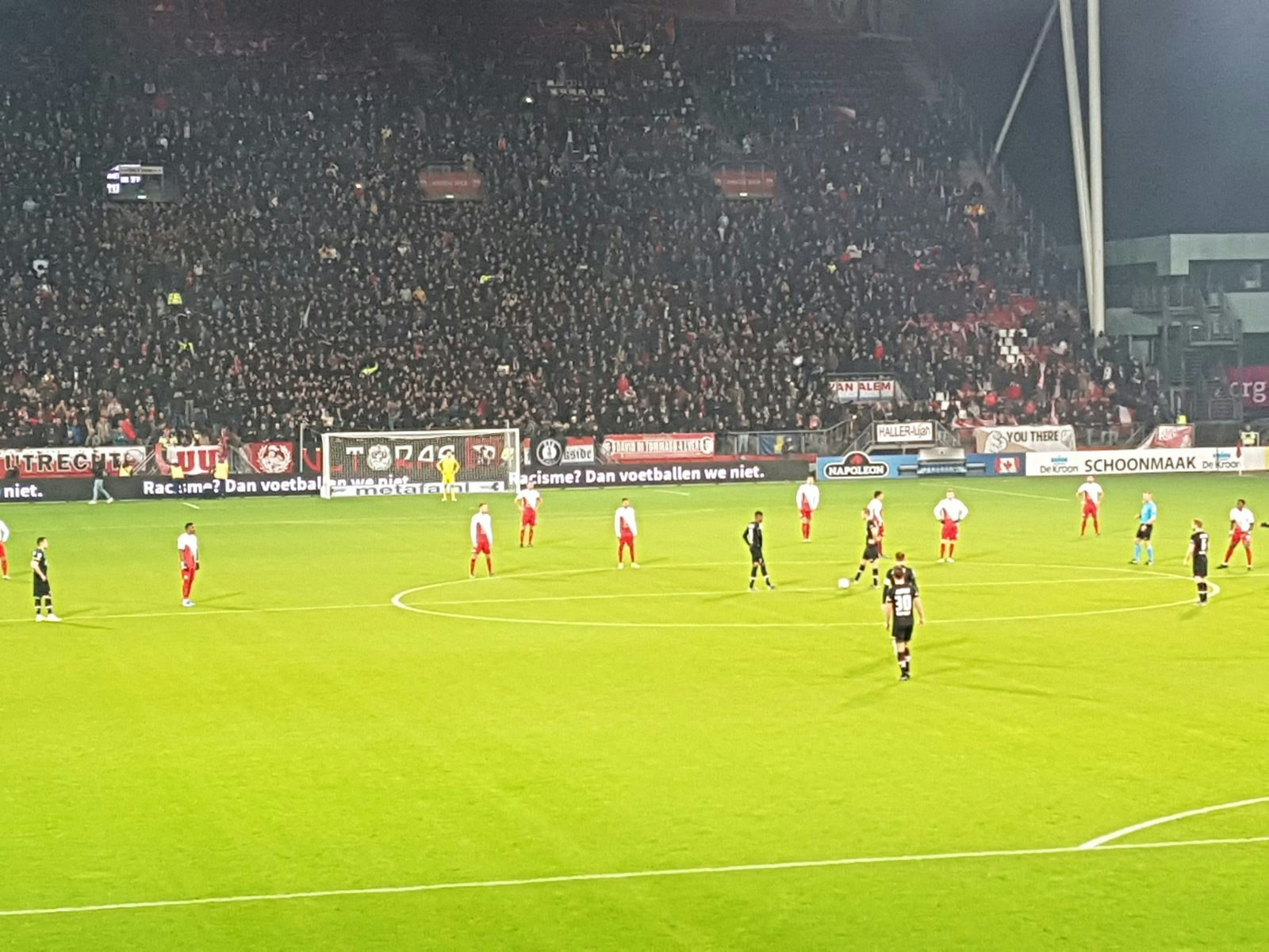 Toen AZ net na rust het derde doelpunt scoorde wierpen ook wij ons hoofd in de schoot. We moesten nu bijna de hele tweede helft de kou verbijten op de tribune. Enige warmte kwam van de altijd gepassioneerde Mark van de Marel. Ook na het inbrengen van Cerny bleef FC Utrecht onmachtig.
