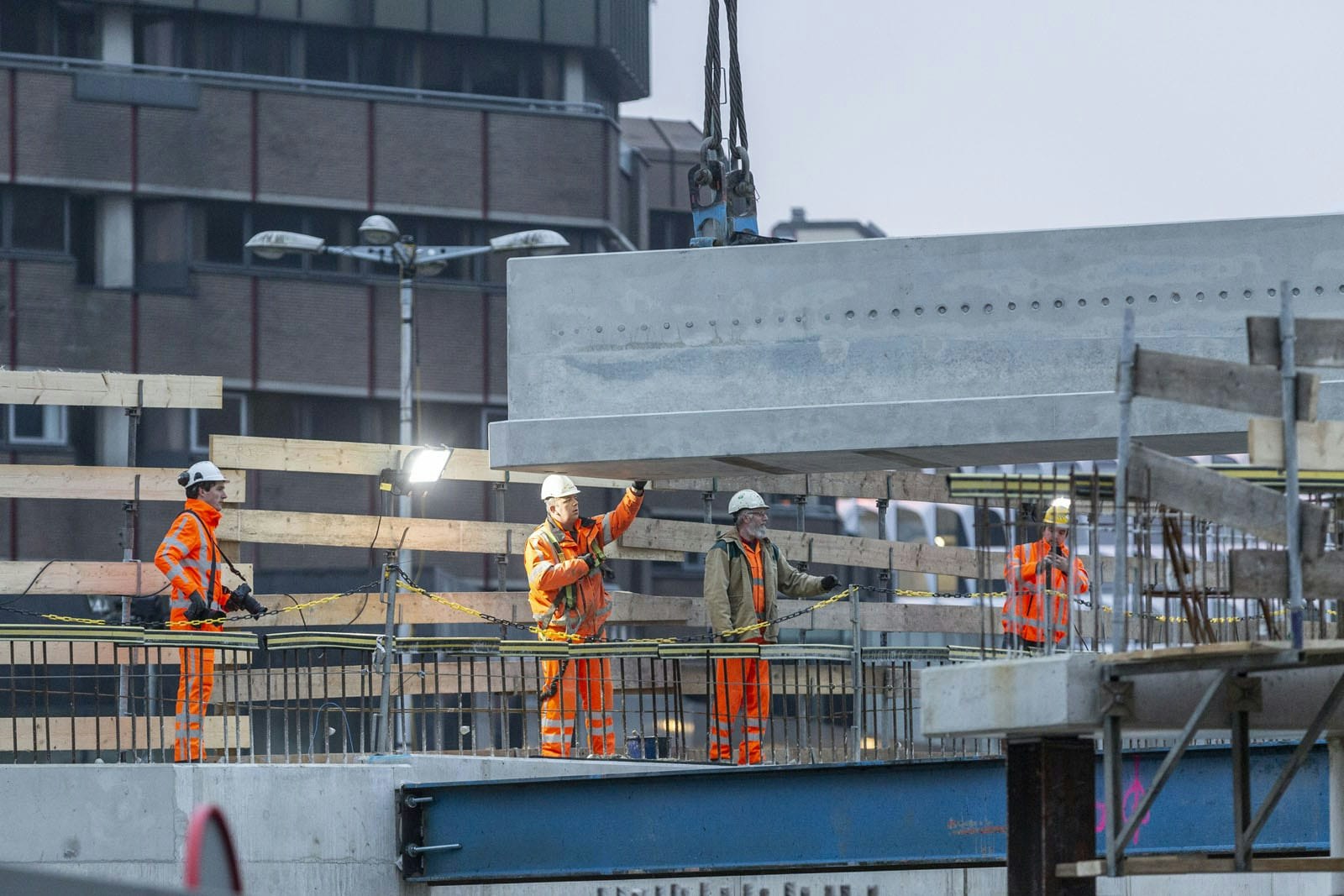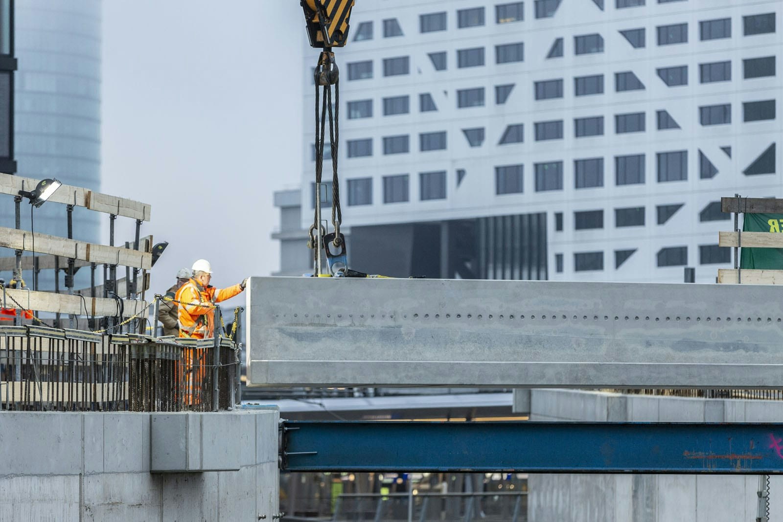 Voor de werknemers van bouwbedrijf Dura Vermeer was de plaatsing van de balk ook een bijzonder moment. “Het is één van de mijlpalen”, zegt Schoemaker. “De productie van de draagbalk heeft ongeveer een jaar in beslag genomen. Bij het plaatsen van zo’n groot en zwaar object komt veel kijken. Het heeft uiteindelijk grote impact op de omgeving en het project. Dit is dan ook wel echt een moment suprême.” De balk lag uiteindelijk rond 07.30 uur op zijn plek.