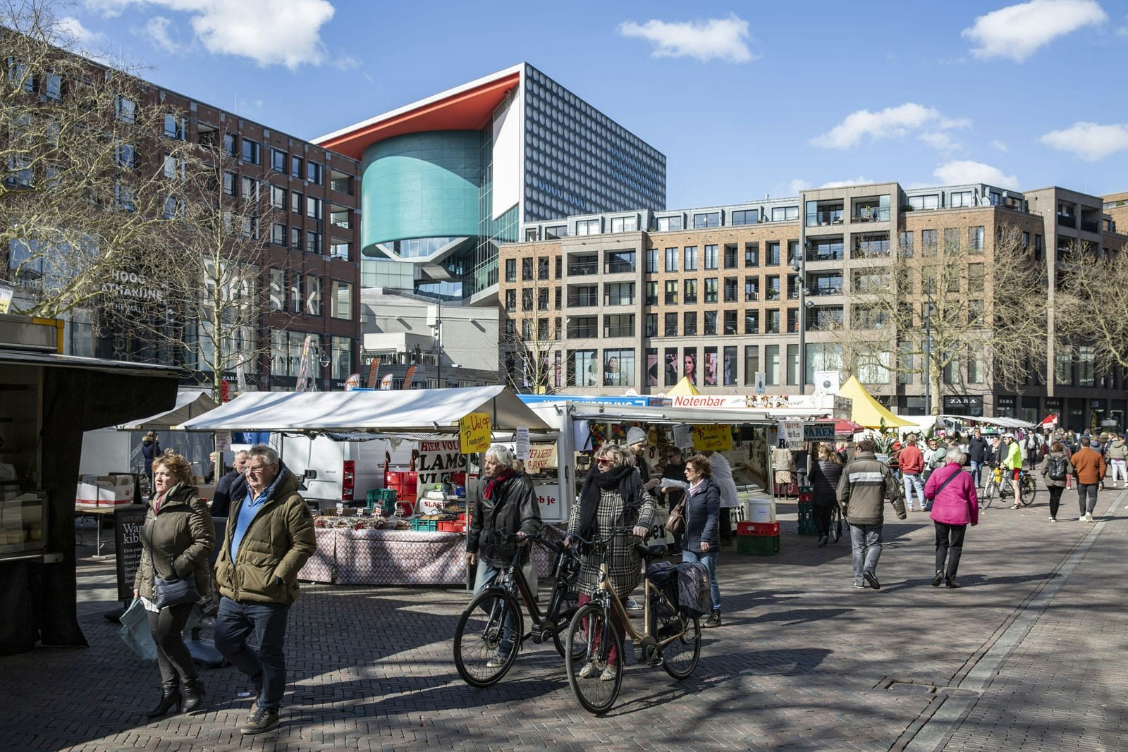 Op het Vredenburg is wel levendigheid te bespeuren. De gemeente heeft er namelijk voor gekozen dat markten in de openlucht wel door mogen gaan.