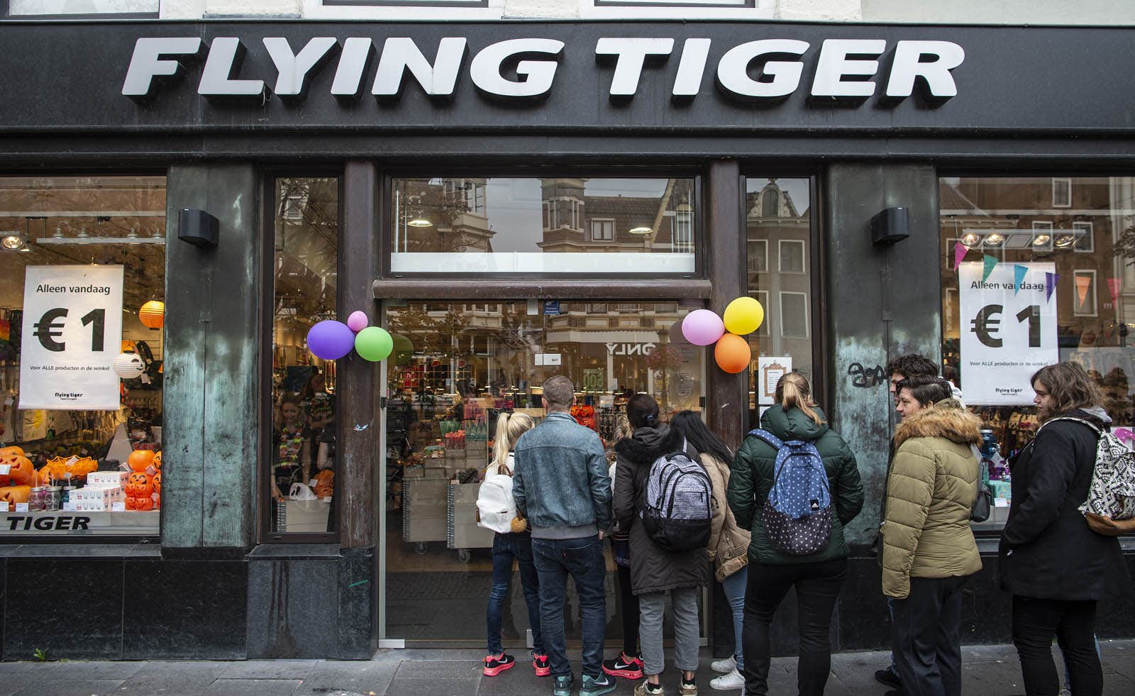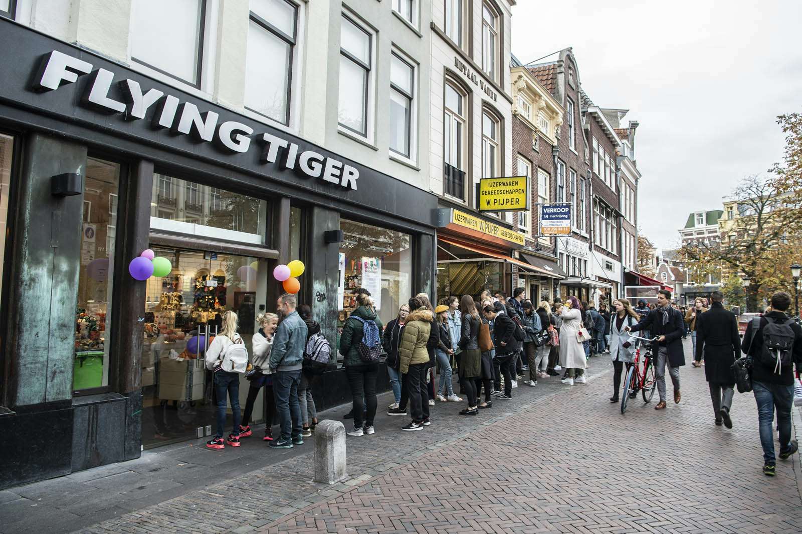 Er stond ruim voor de opening van de Flying Tiger een rij van tientallen meters voor de winkel. Het Deense merk bestaat dinsdag 10 jaar in Nederland en verkoopt alles in de winkel voor 1 euro. Reden voor een hoop mensen om er vroeg bij te zijn.