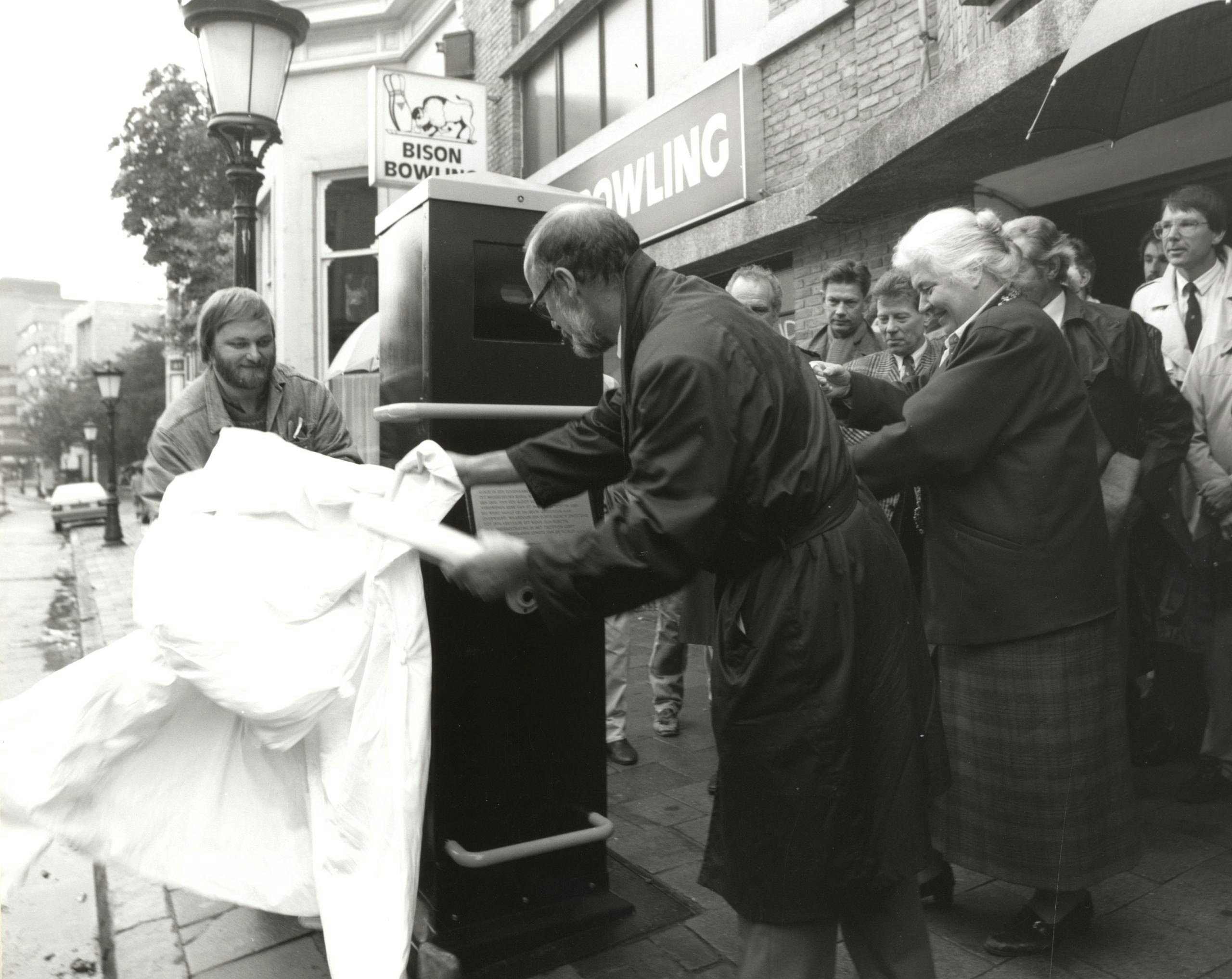 Deze stalen kast was al een tijdje stuk en de mensen van stadsbedrijven hebben bij de afdeling Erfgoed aan de bel getrokken. Dat is ongeveer een jaar geleden gedaan en nu staat er op de Mariaplaats een hagelnieuwe loertoeter die werd onthuld door wethouder Rachel Streefland. “Voorbijgangers duiken nu virtueel ondergronds en krijgen vervolgens een mooie impressie te zien van de Mariaplaats in de middeleeuwen”, aldus de wethouder.