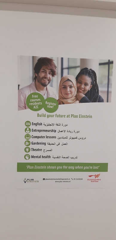 Op de opvanglocatie op de Pahud de Mortangesdreef wonen jongvolwassenen en asielzoekers bij elkaar in de buurt. Het terrein biedt ook ruimte aan de wijkhuiskamer. Daar ontmoeten bewoners uit het AZC, de jongeren en omwonenden elkaar. “In Utrecht vinden we inpassing in de buurt belangrijk: geen grootschalige AZC’s maar passend in de wijk volgens ‘Plan Einstein’. Hier luidt het credo: samen wonen, samen werken, samen leren.” Er worden activiteiten en cursussen georganiseerd voor zowel mensen uit de wijk als voor bewoners. De kinderen, ook die uit de buurt, kunnen spelen in de speeltuin. Tussen de woonblokken is een moestuin aangelegd voor bewoners en omwonenden met groene vingers. Volgens Kitty heeft het open karakter en de bedrijvigheid op het terrein een positief effect: “Of deze mensen in Nederland blijven of niet, ze boeken vooruitgang. Stilstand is voor niemand goed.”