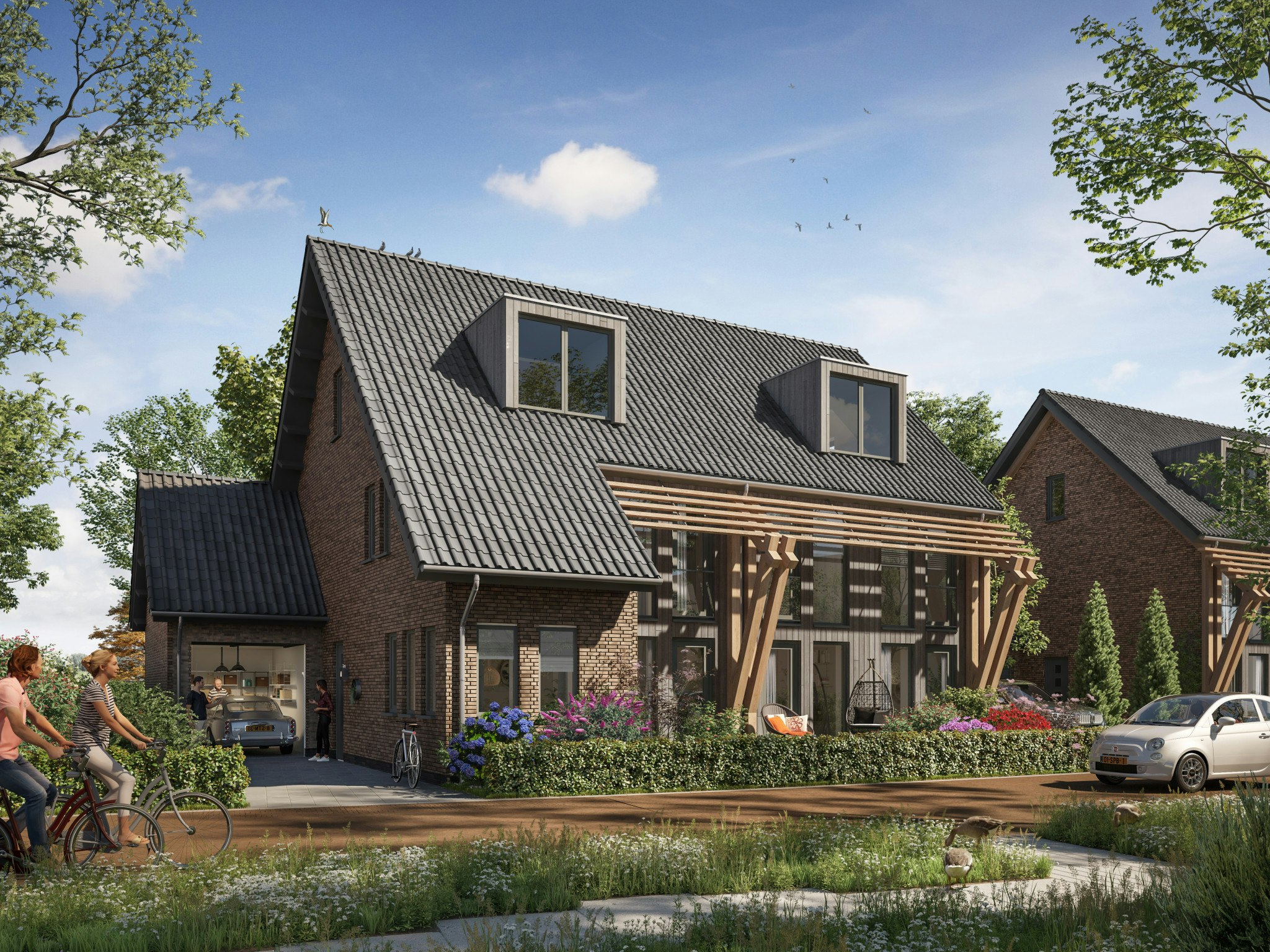 Zo wordt Hoef en Haag in alle opzichten een steeds hechtere dorpsgemeenschap. De nieuwste wijk, De Erven, is nu in aanbouw. Dit deel van het dorp krijgt een ruimtelijke uitstraling door boomgaarden, groene erven en een speelse inrichting met kleine paadjes, ontmoetingsplekken en verschillende bouwstijlen. Ben je op zoek naar rust en ruimte, met voorzieningen op loopafstand? Kijk dan eens naar de woningen die nu in de verkoop zijn: ruime twee-onder-een-kapwoningen met een mooie, donker houten gevel en maar liefst vier slaapkamers, uit te breiden naar vijf. En volop plek om te relaxen: op het balkon aan de achterkant, waar je een fantastisch uitzicht over de Meander hebt, in je tuin of onder de overkapping aan de voorkant. Zie je jezelf al in je hangstoel zitten met een kop koffie en een goed boek? Meer informatie: hoefenhaag.nl.