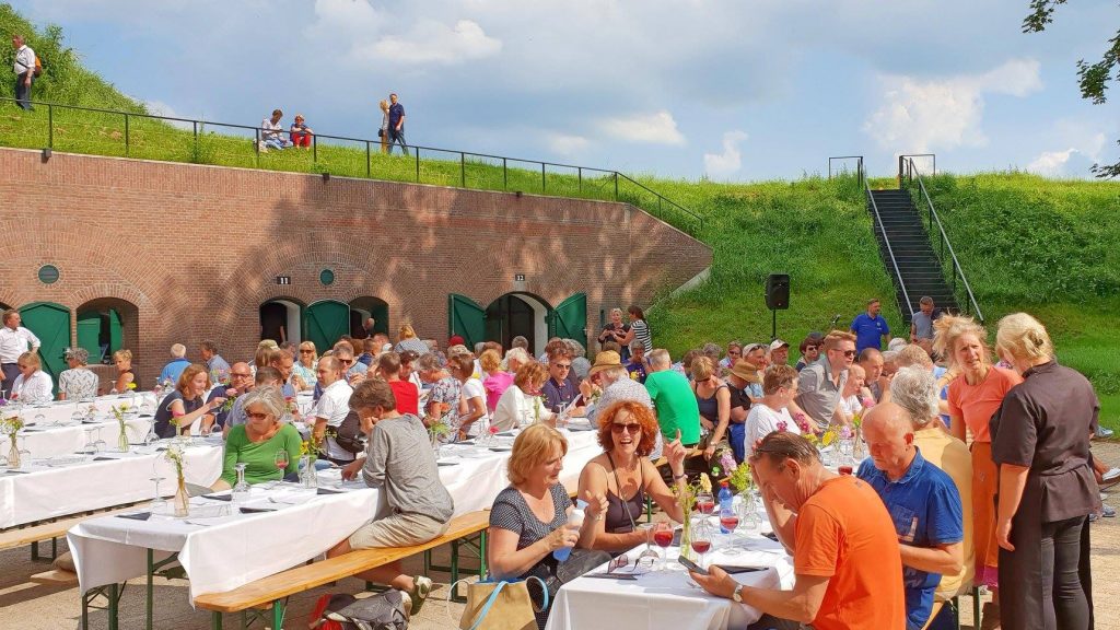 Voor heerlijke lunches op de mooiste terrassen kan je o.a. terecht op Fort de Batterijen en Wijnfort Jutphaas (Nieuwegein), Fort WKU (Tull in ’t Waal), Geofort (Herwijnen), Fort Vuren, Fort Altena (Werkendam) en Fort Everdingen.
