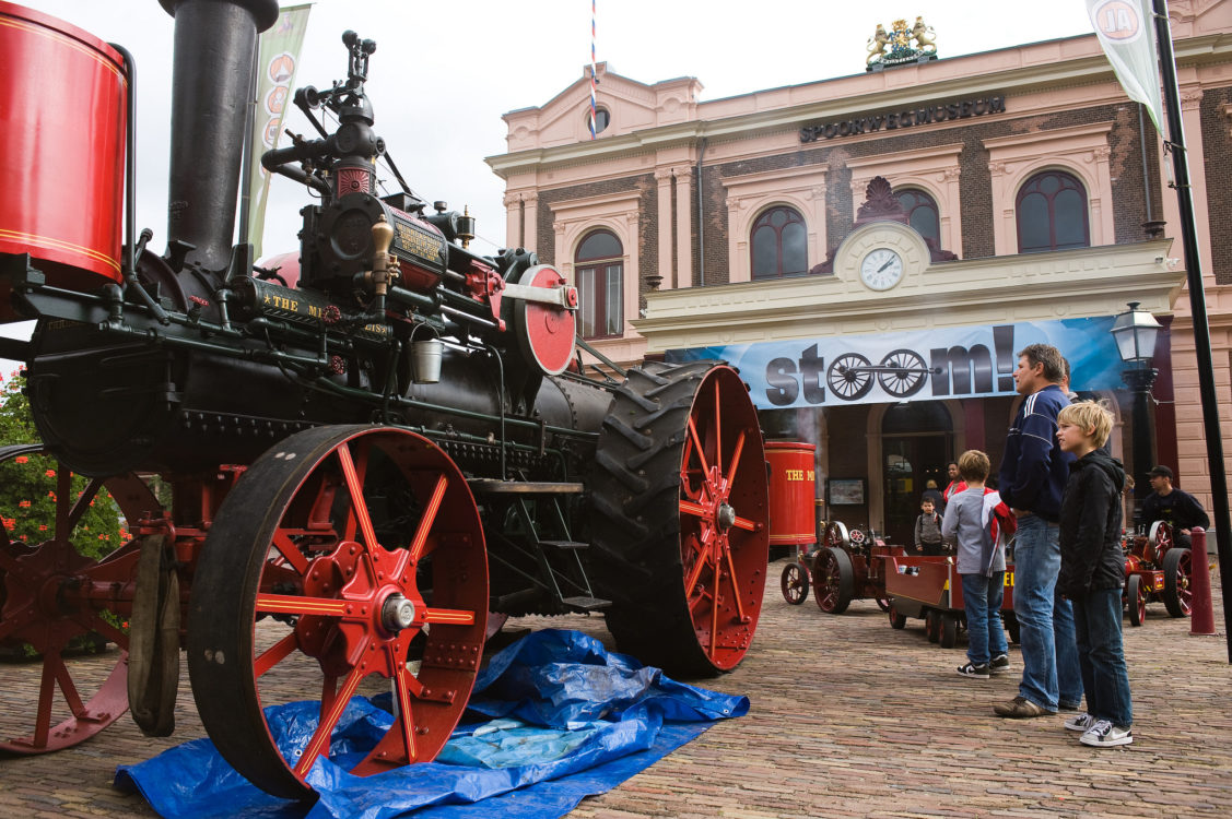 De blikvangers zijn een aantal levensgrote stoomtrekkers zoals de ruim 10 ton wegende Minneapolis uit 1911 en de 8,5 ton zware stoomtractor ‘The Elephant’. Ook auto’s en vrachtauto’s reden vroeger op stoom. Een voorbeeld hiervan is de Stanley stoomauto. Deze prachtige 7 persoons-cabriolet werd in 1919 in de VS gebouwd. Tussen 1898 en 1925 zijn ongeveer 12.000 van dit soort stoomauto’s gebouwd, veel zijn er echter niet van bewaard. In Het Spoorwegmuseum zal de stoomauto rijdend te zien zijn. Ook over de werking van stoom valt van alles te leren. Medewerkers van het museum doen met een speciale stoomkar allerlei leuke proefjes met stoom. Op het buitenterrein rijden allerlei mooie, rare en vreemde stoomvoertuigen. Op sommige kun je meerijden.