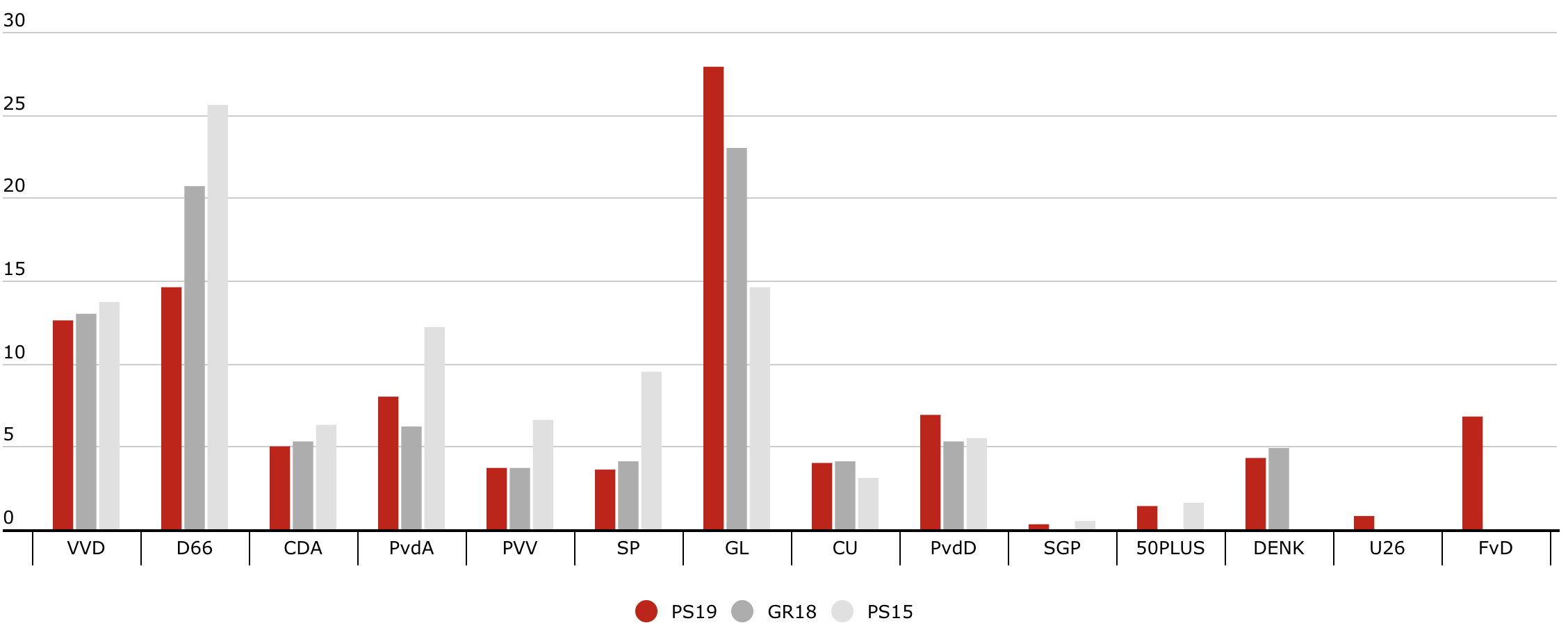 - GroenLinks 27,9% (+13,3%)