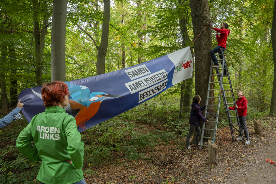 In aanloop naar de Tweede Kamerverkiezingen voerden GroenLinks-PvdA zondagochtend actie tegen de voorgenomen verbreding van de A27 en de daarvoor noodzakelijke bomenkap in Amelisweerd. Raadslid Rick van der Zweth en wethouder Linda Voortman hingen samen een spandoek op. De bijeenkomst trok zo’n vijftien sympathisanten.